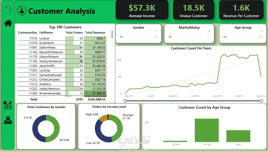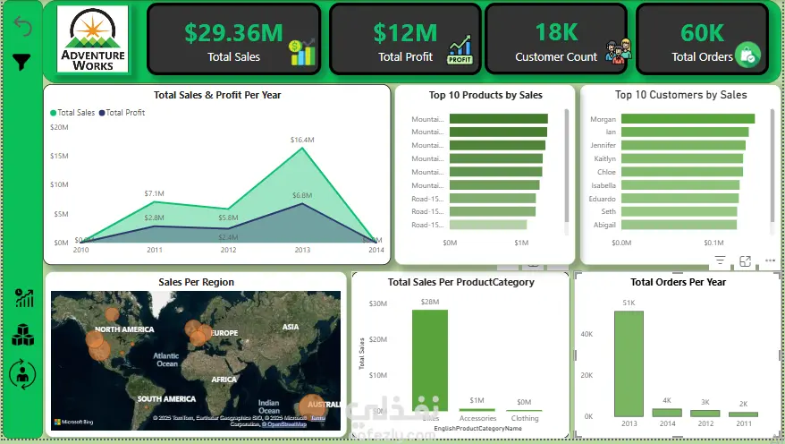 في هذا المشروع، استخدمت قاعدة بيانات AdventureWorks 2022 لتصميم نموذج تقارير تفاعلية باستخدام Power BI بهدف محاكاة بيئة عمل واقعية لشركة تصنيع وبيع بالتجزئة.