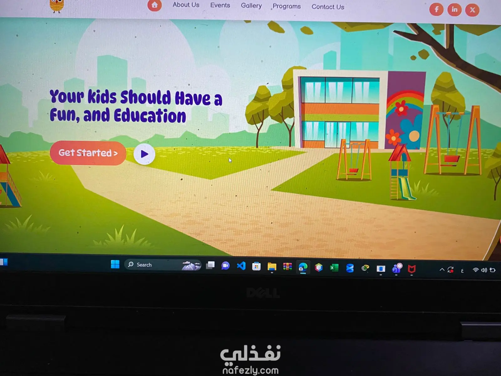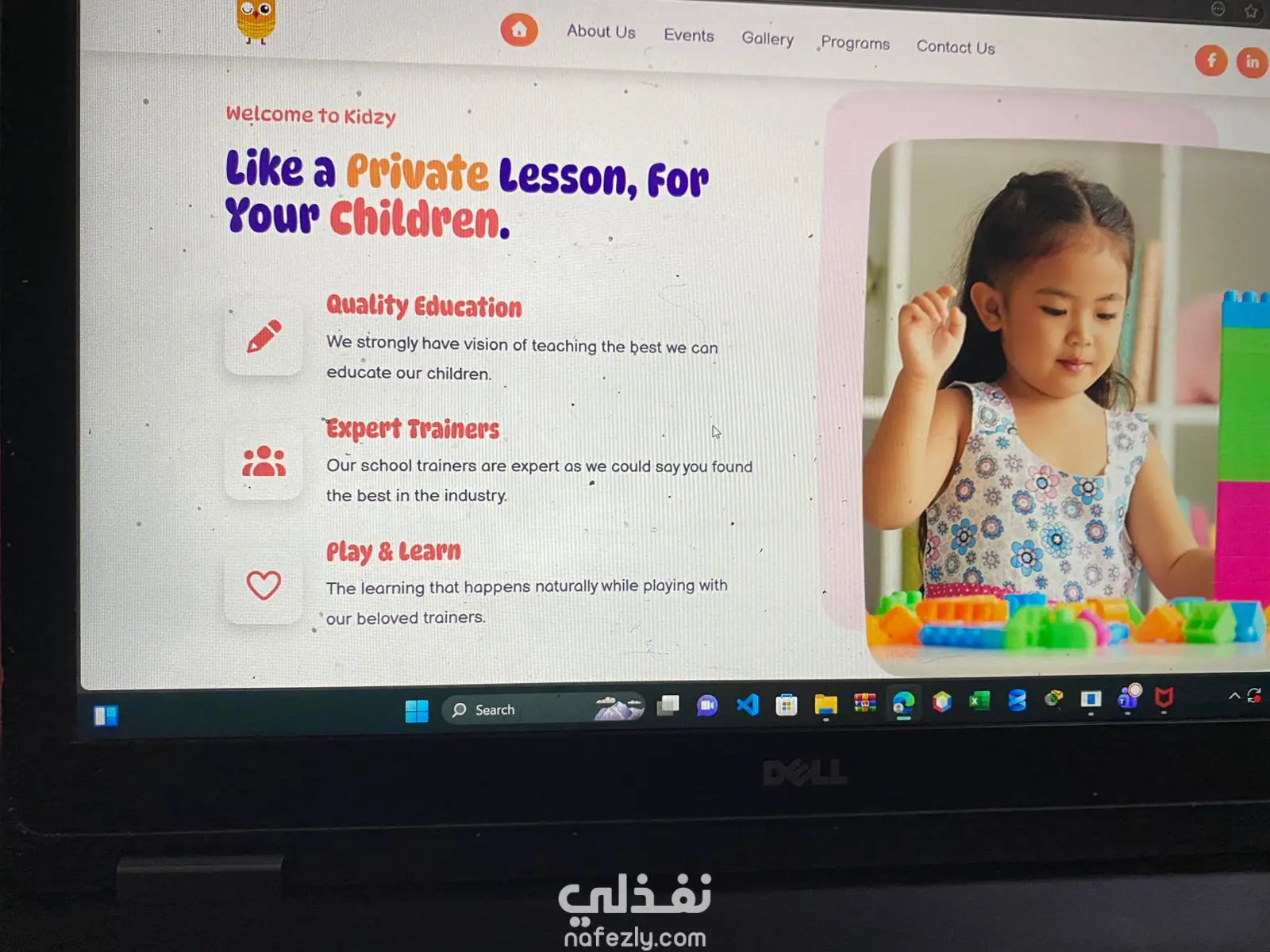 لموقع مصمم بشكل منظم وسلس، مع تقسيم واضح للأقسام: Home, About, Events, Gallery, Programs, Contact.