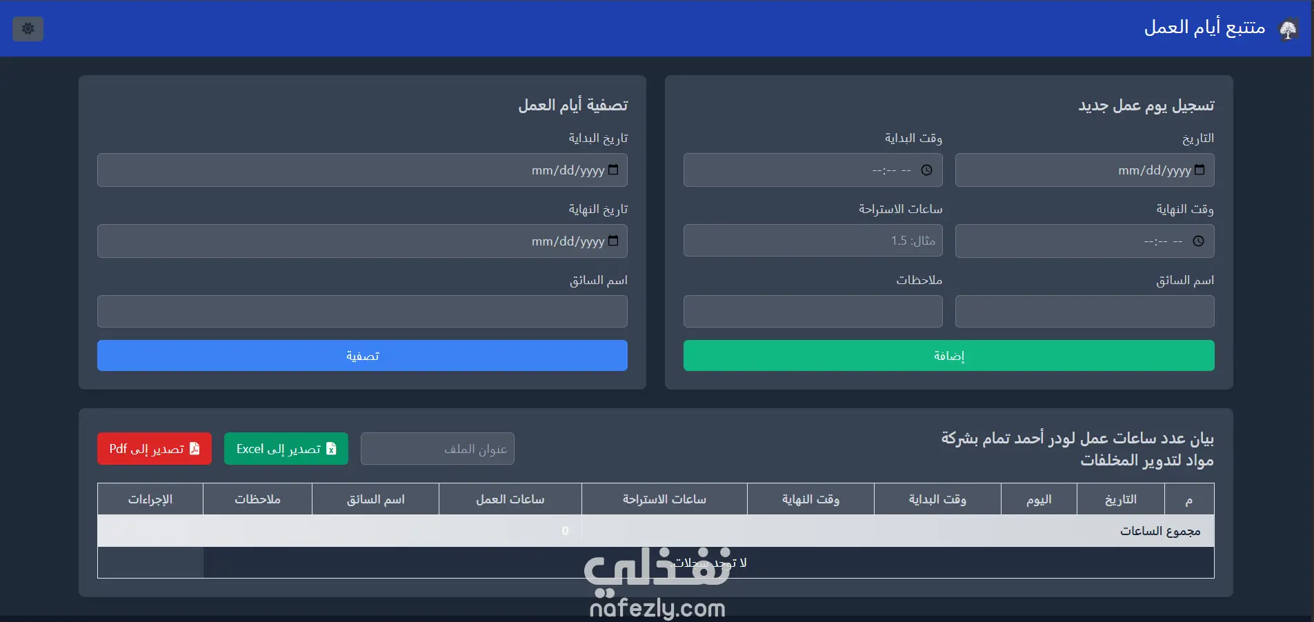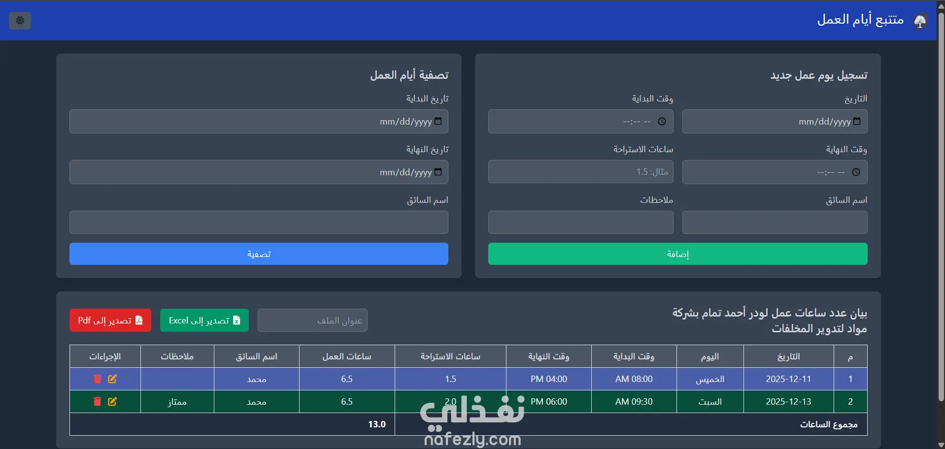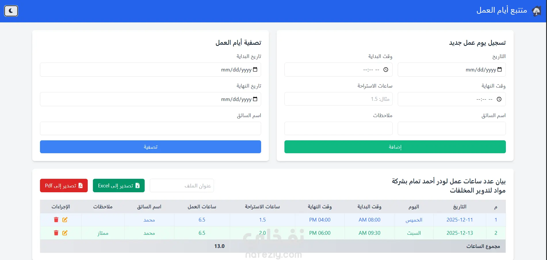 Mawad — تطبيق ويب لإدارة وعرض أيام العمل للسائقين