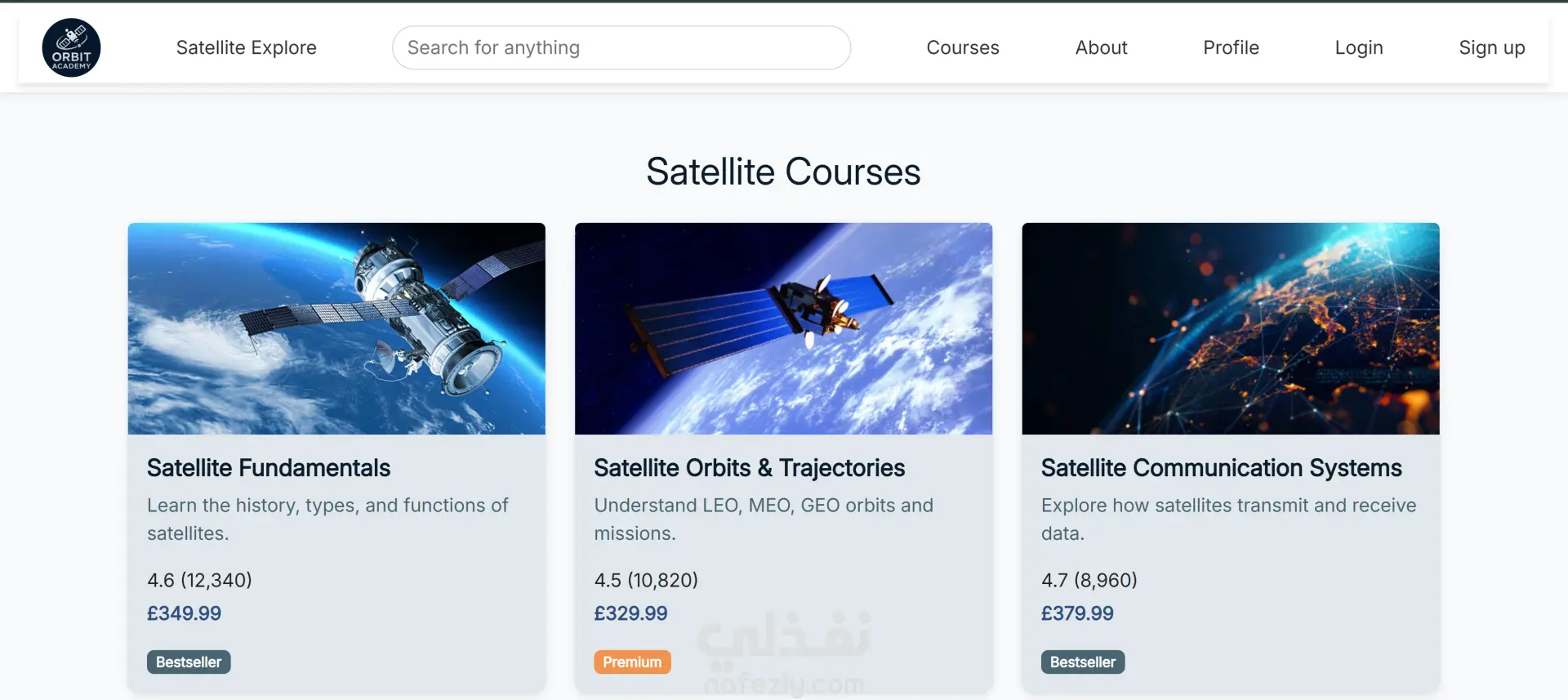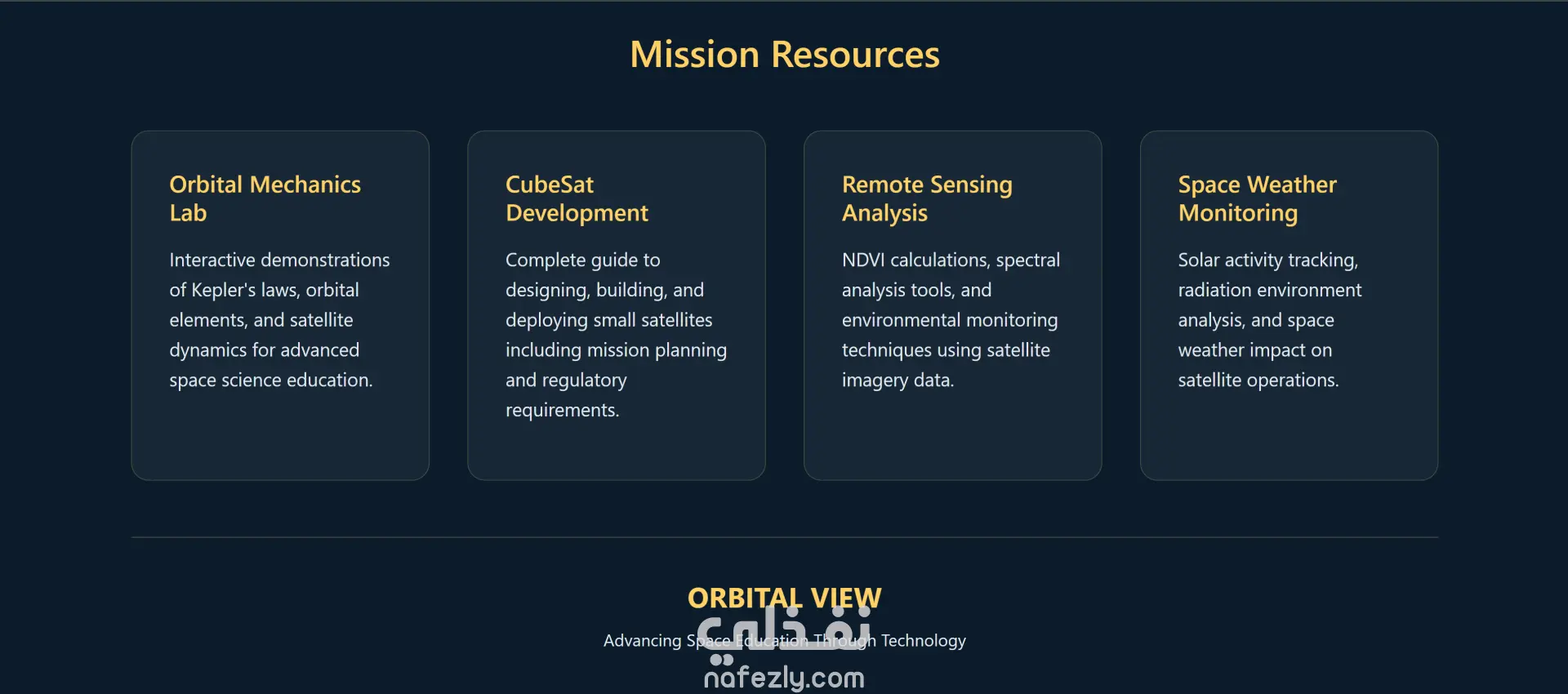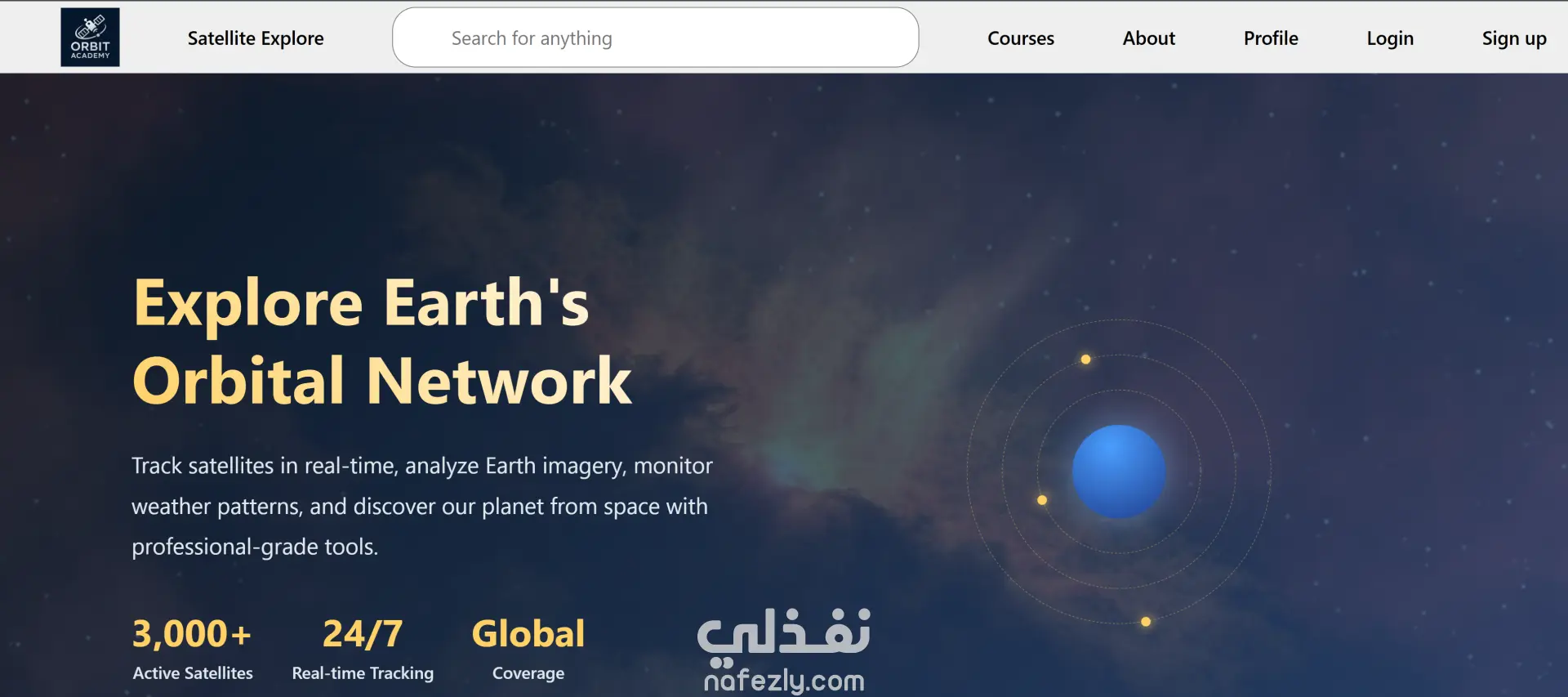 الموقع عبارة عن أكاديمية تعليمية أونلاين متخصصة في كورسات مجال الفضاء والأقمار الصناعية. فيه كورسات متنوعة زي ميكانيكا المدارات، أنظمة الأقمار الصناعية، الاستشعار عن بعد، الملاحة GPS، وتصميم المهمات الفضائية. كمان بيوفر أدوات تفاعلية لمتابعة الأقمار في الوقت الحقيقي، تحليل صور الأرض، متابعة الطقس، ومحاكاة مدارية للتعلم العملي.