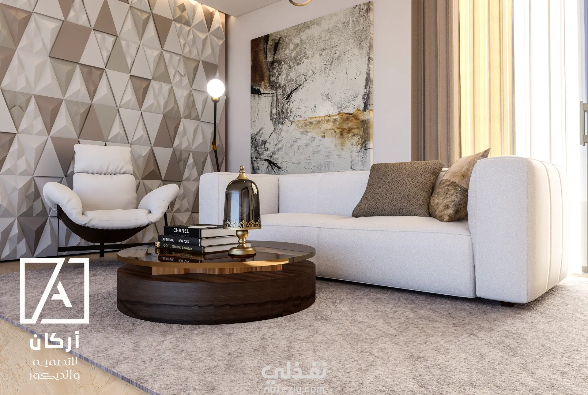 يُبرز هذا المشروع تصميمًا داخليًا عصريًا ودافئًا وأنيقًا لغرفة معيشة، مصممًا لخلق توازن مثالي بين الراحة والفخامة. تتميز المساحة بألوان محايدة راقية تُكمّلها خامات غنية وإضاءة طبيعية ناعمة، مما يُعزز الانسجام العام للغرفة.