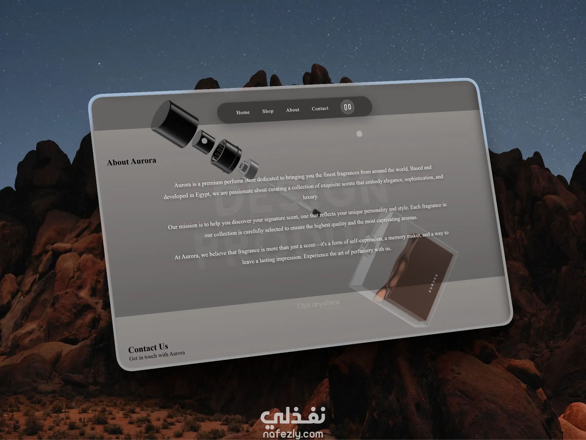 Aurora is a modern and elegant online perfume shop designed to elevate the shopping experience with a unique 3D animated perfume bottle that brings the product to life. The website features a sleek, luxurious interface inspired by high-end fragrance brands, allowing customers to explore perfumes in an interactive, immersive way. With smooth animations, fast navigation, and a refined color palette, Aurora showcases each fragrance with detailed notes, mood descriptions, and premium visuals. Built to be fully responsive, user-friendly, and optimized for conversions, Aurora is the perfect solution for perfume brands looking to stand out with a futuristic and stylish online presence.