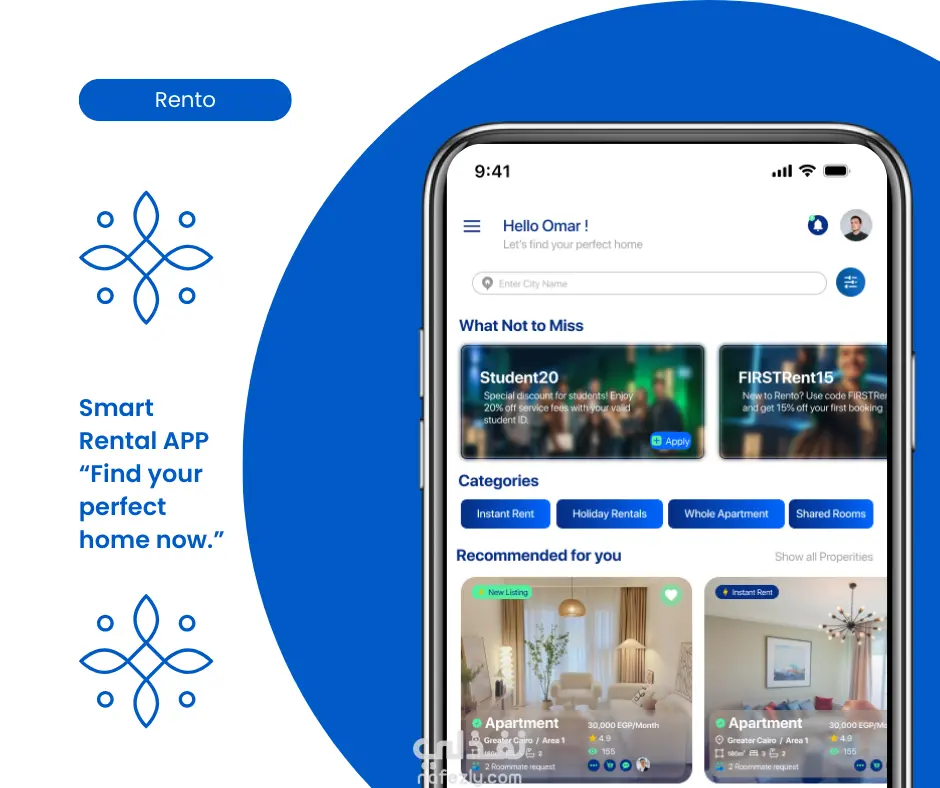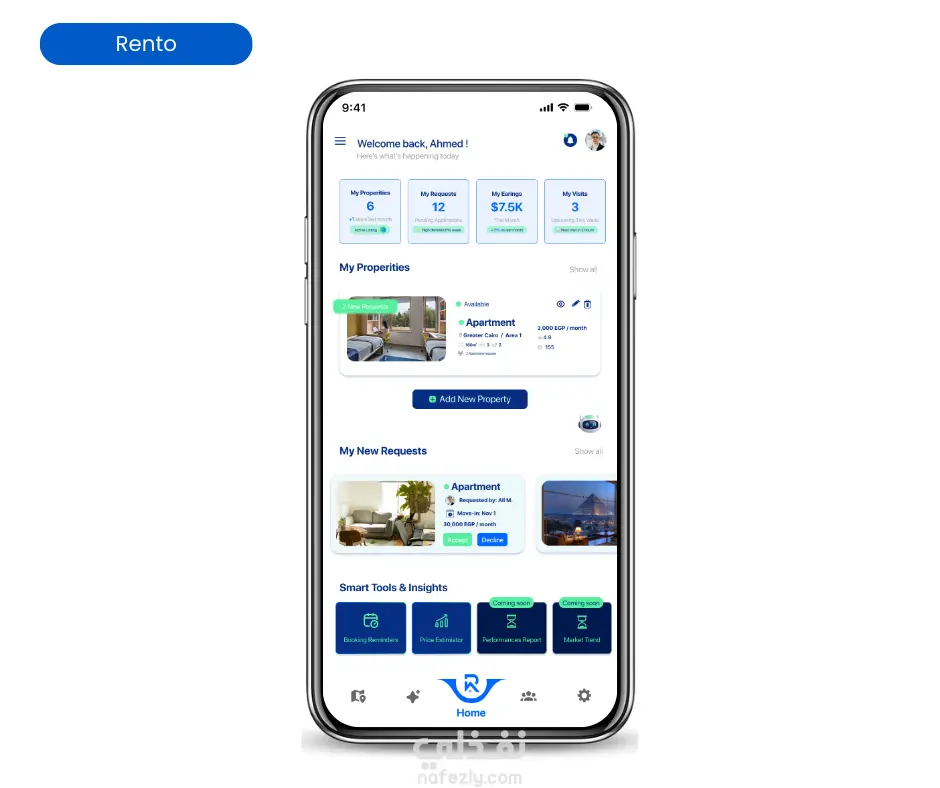 Rento هو تطبيق موبايل يجمع بين المستاجر والمؤجر في منصة واحدة دون اي وسيط ز كان الغرض منه ان يسهل للمستاجر عملية ايجاد السكن المناسب للايجار ويسهل علي المؤجر ايجاد المستاجرين المناسبين بكل سهولة ودون تضييع الوقت وذلك في مكان واحد يضمن تجربة بسيطة وسهلة وممتعة وليست مجرد شقق معروضة.
