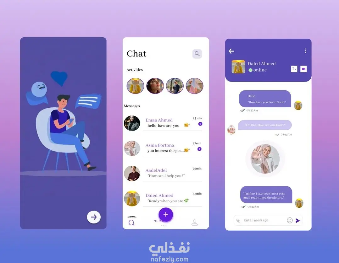 تصميم تطبيق شات سهل وبسيط ب الوان متناسقه وسلسل سهل الاستخام تصميم تطبيق شات سهل وبسيط ب الوان متناسقه وسلسل سهل الاستخام