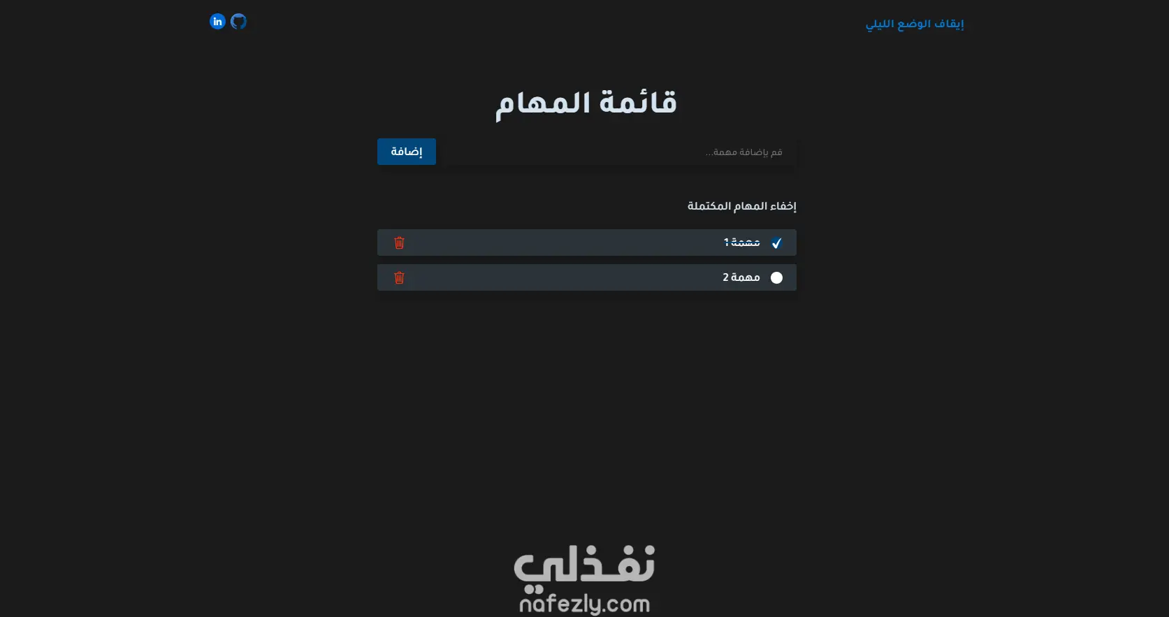- حفظ تلقائي للمهام باستخدام LocalStorage لضمان عدم ضياع البيانات.