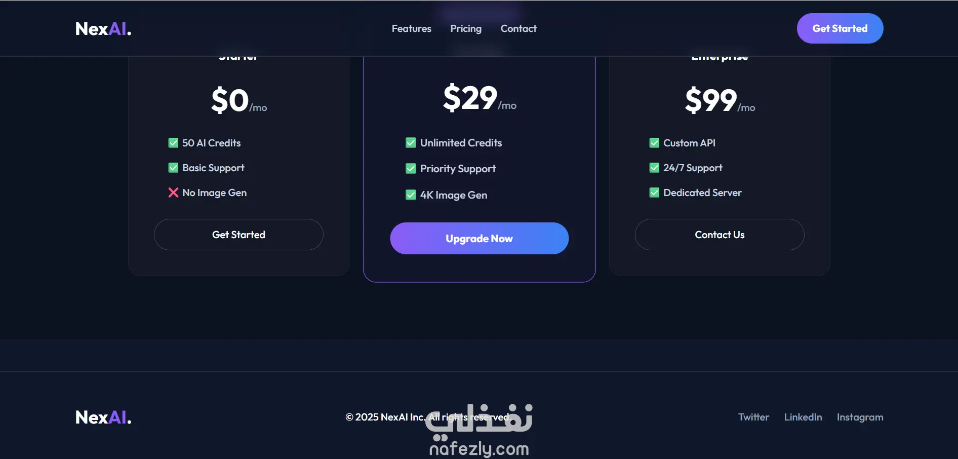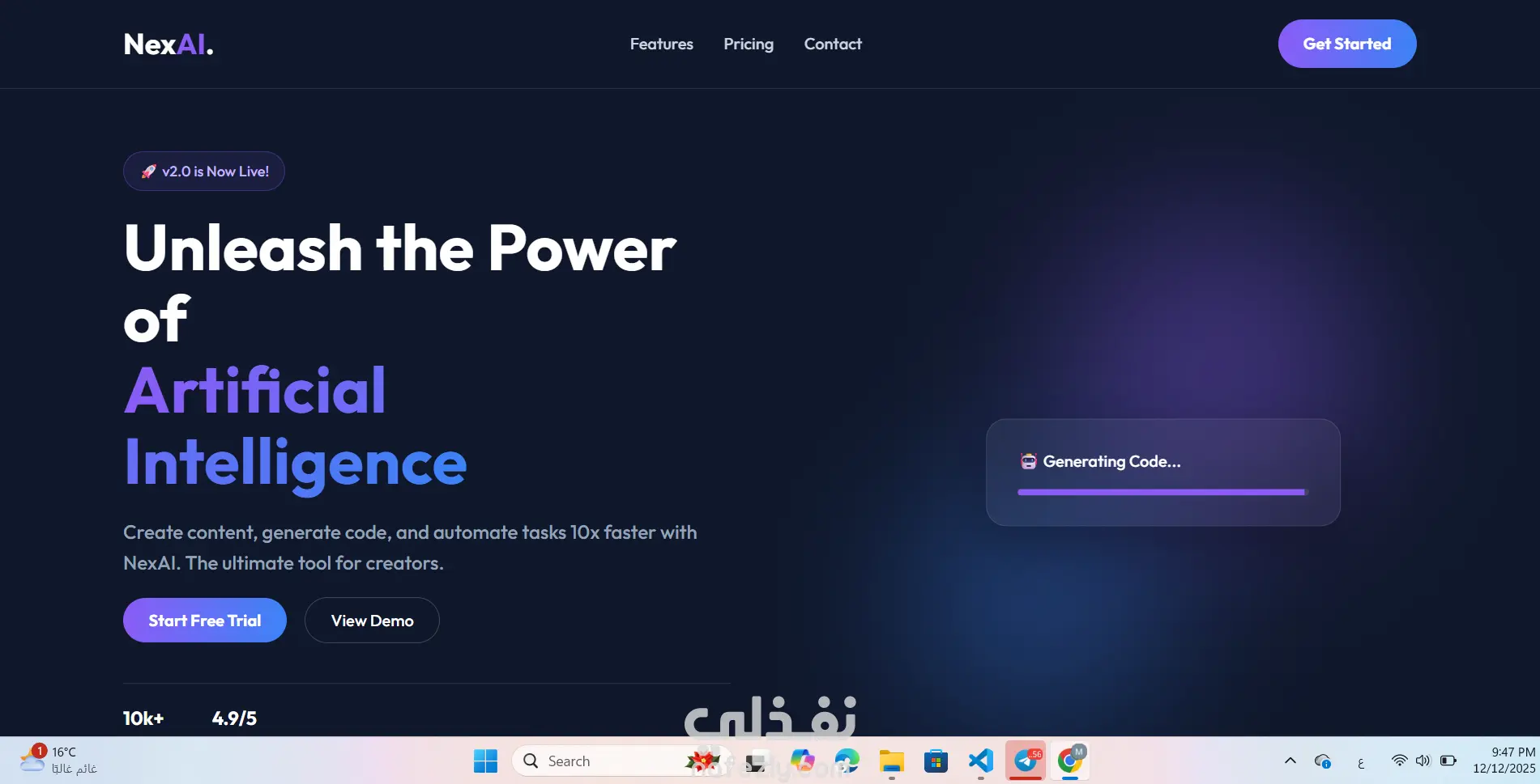 تصميم وتكويد صفحة هبوط لمنتج برمجيات (SaaS) بأحدث صيحات التصميم العالمية 2025. المميزات التقنية: 1. تصميم Dark Mode مريح للعين مع ألوان نيون عصرية. 2. تأثيرات الزجاج (Glassmorphism) في الـ Navbar والكروت. 3. جداول أسعار (Pricing Tables) تفاعلية. 4. تأثيرات Hover متقدمة لجذب الانتباه. 5. متجاوب 100% وسريع التحميل. تم البناء بـ: HTML5, CSS3 (بدون قوالب جاهزة). رابط المعاينة: (حط رابط Netlify هنا)