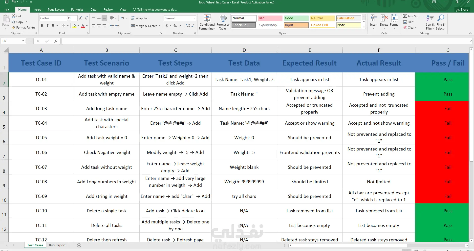 اختبار (Manual Testing) لتطبيق ويب "Todo Wheel App" موجود على الرابط التالي: http://todo.shape-shifters.tech/ الهدف: اكتشاف وتوثيق أكبر عدد ممكن من الأخطاء (Bugs)، المشاكل الوظيفية (Functional Issues)، أو مشاكل قابلية الاستخدام (Usability Issues). 1) Test Cases شاملة ومنظمة تغطية كاملة لعمليات: إضافة – تعديل – حذف المهام حالات استخدام طبيعية + حالات سلبية + Edge Cases تسليم ملف Excel/Google Sheet واضح الجداول 2) تقرير Source Code Review & Testing Report تحليل للكود من ناحية الجودة (Structure – Logic – Error Handling) تحديد نقاط الضعف المتوقعة اقتراح تحسينات عملية تسليم التقرير بصيغة PDF أو Sheet 3) تقرير Bugs احترافي بالتفصيل لكل خطأ سيتم توفير: الوصف خطوات النتيجة المتوقعة vs الفعلية الـ Severity Screenshot تنظيم الأخطاء حسب النوع (Functional – UI – Usability)