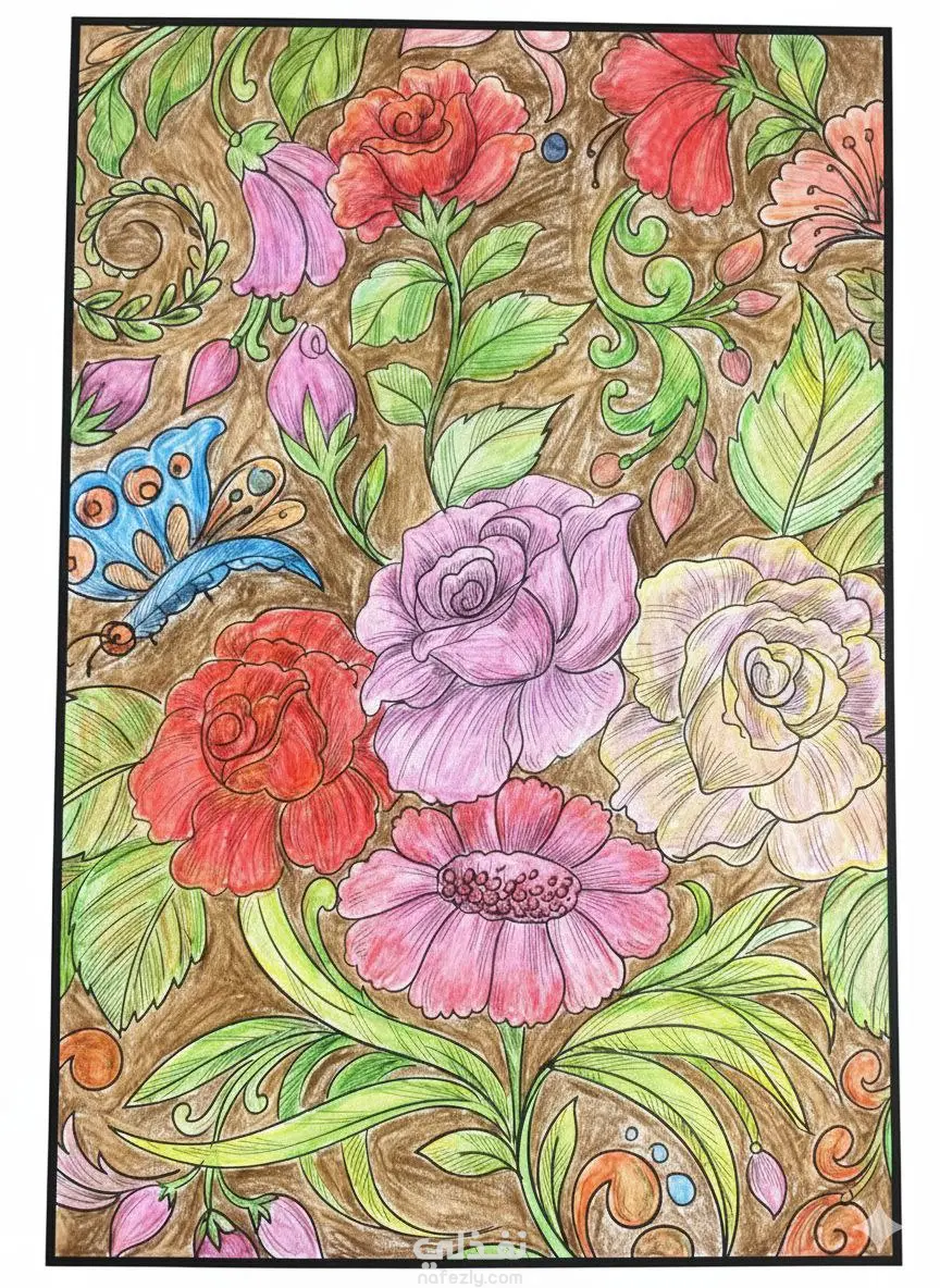 🌹 The Flowers World Mandala hand colored Pattern 🦋
