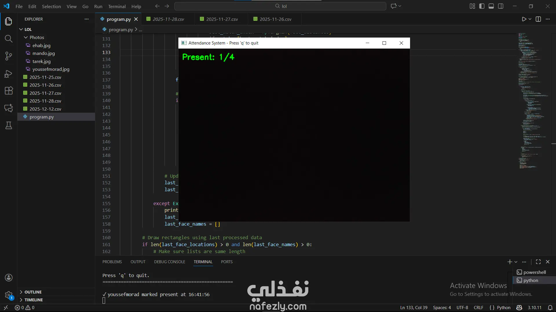 An Attendance System with Face Recognition is an AI-powered solution that automates the process of recording student or employee attendance using facial identification technology. Instead of traditional methods like manual sign-in sheets, ID cards, or fingerprint scanners, the system uses a camera to detect and recognize faces in real time.