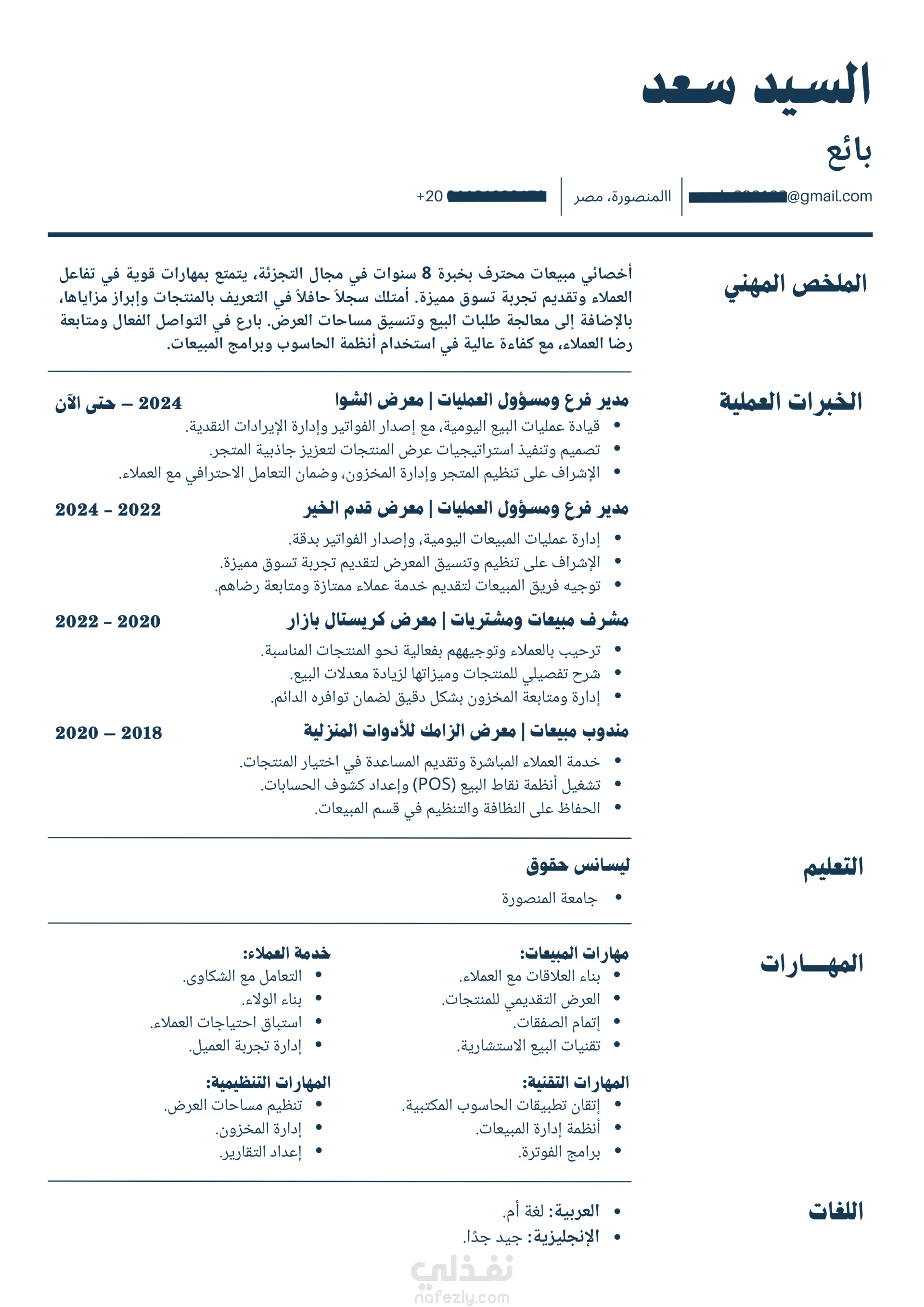ATS Arabic CV سيرة ذاتية احترافية باللغة العربية متوافقة مع أنظمة الفلترة ATS