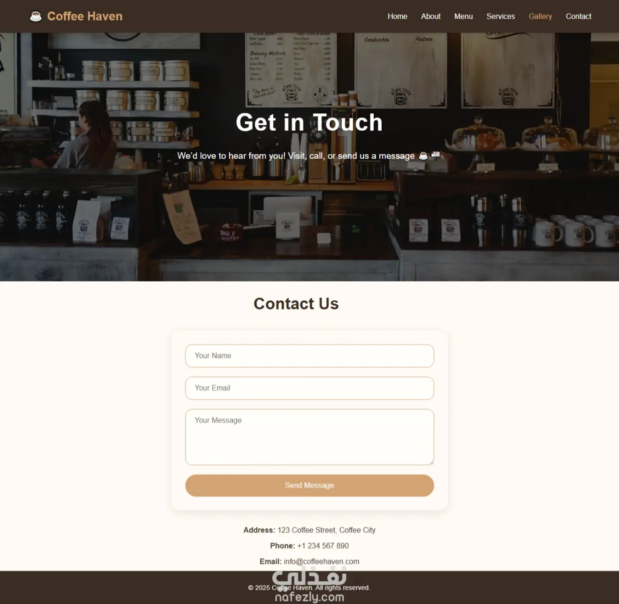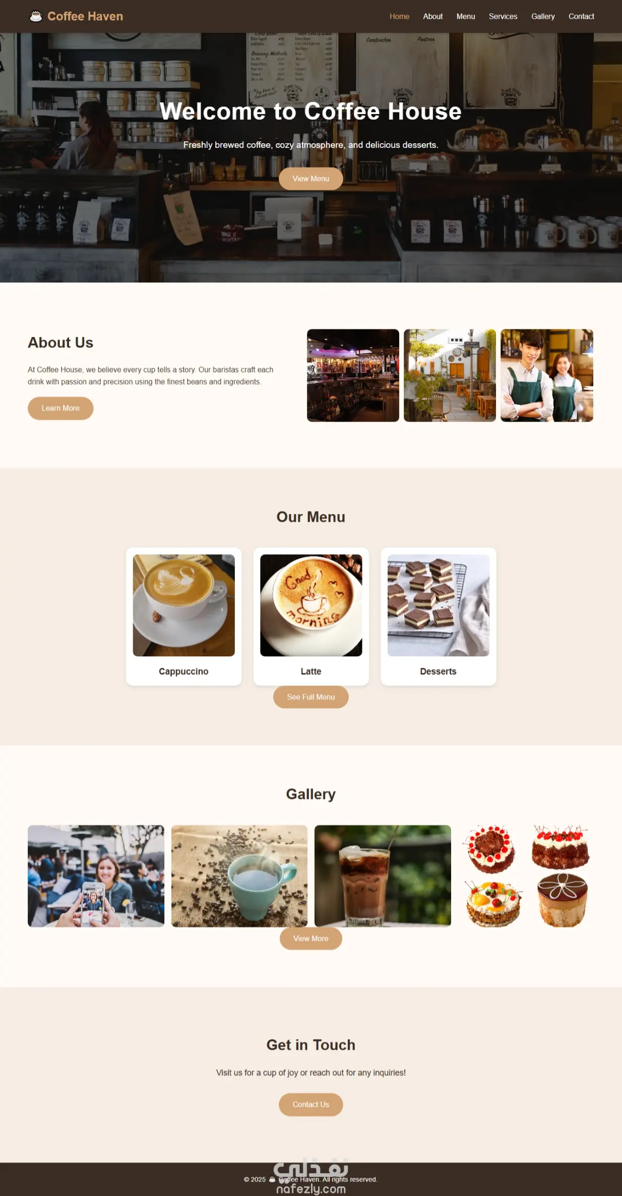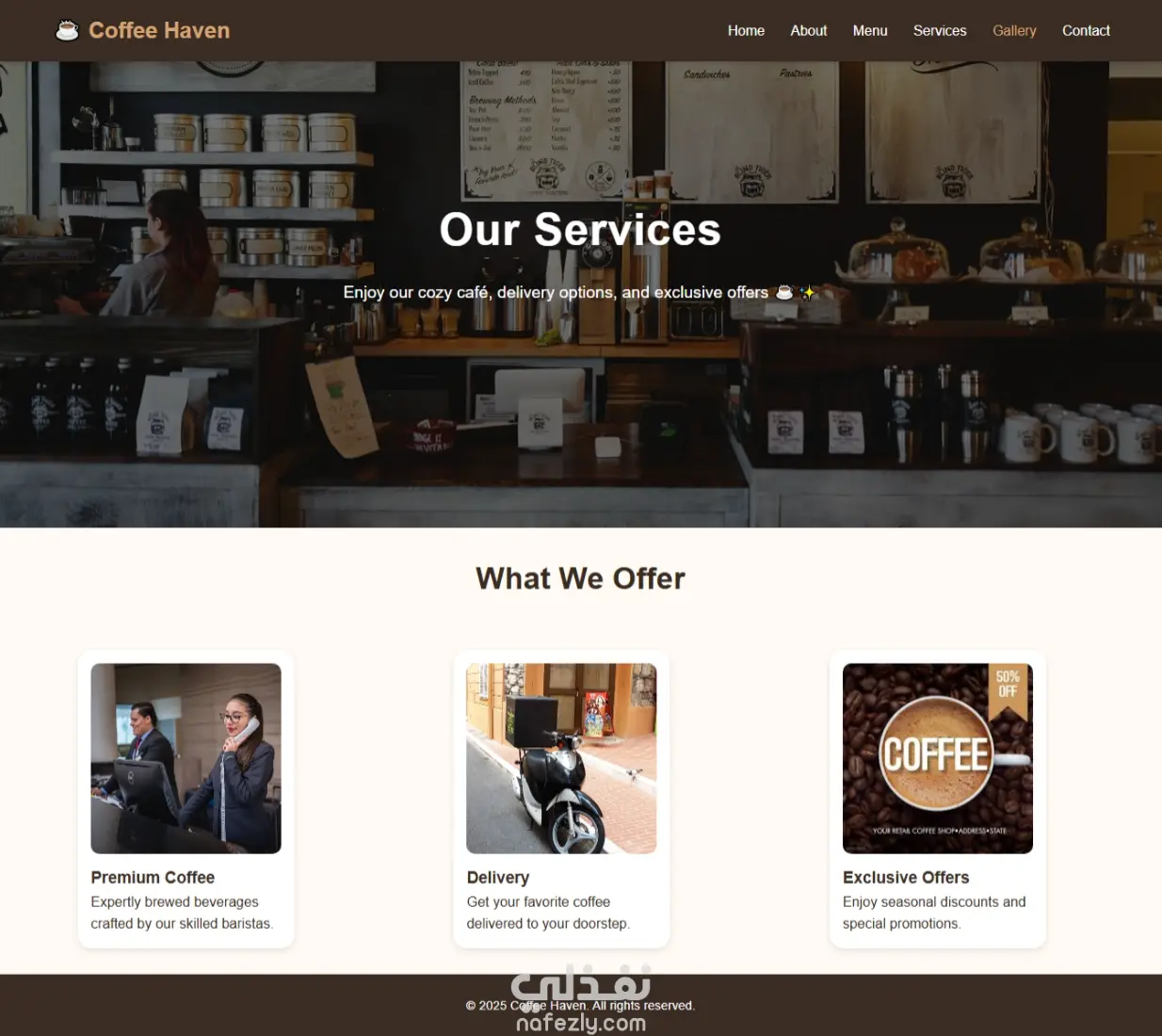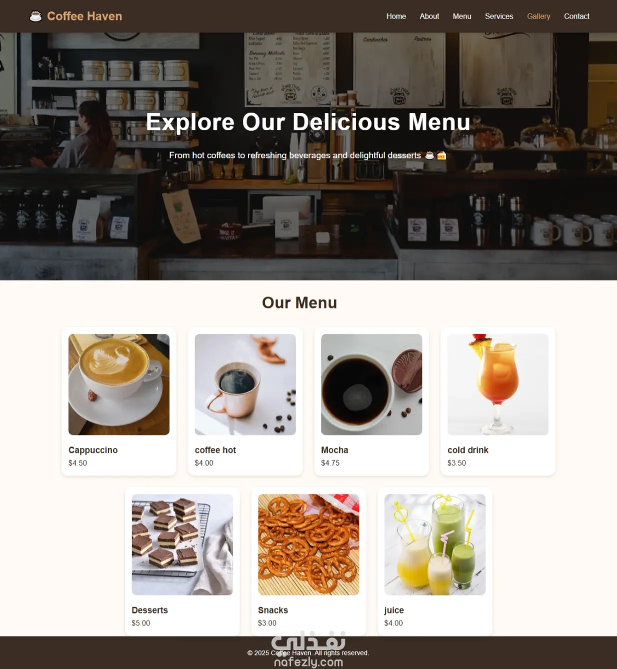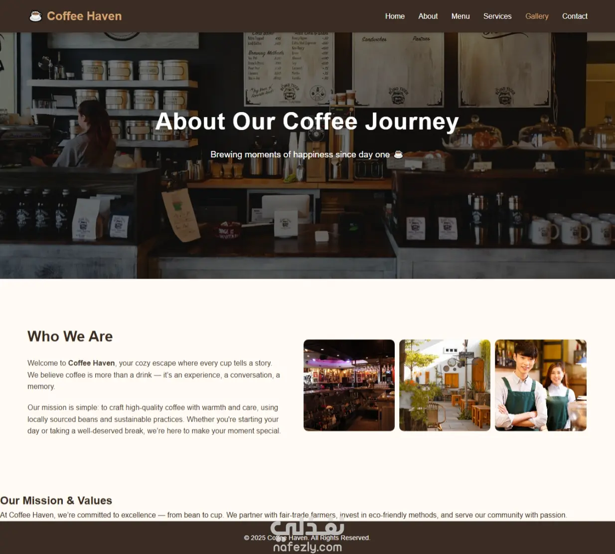 تصميم وتطوير موقع كوفي شوب بواجهة عصرية ومتجاوبة