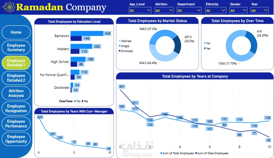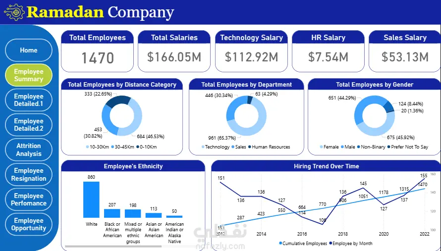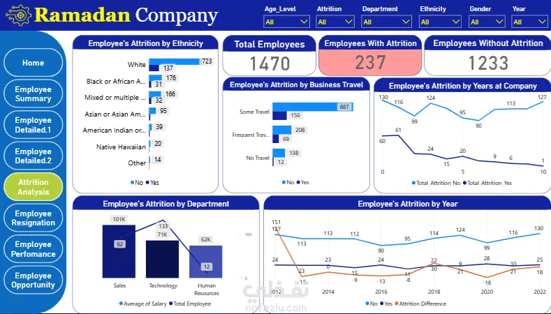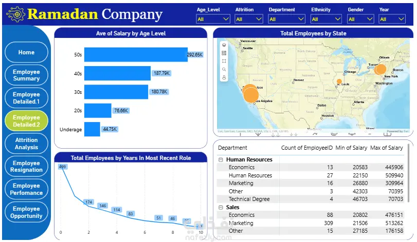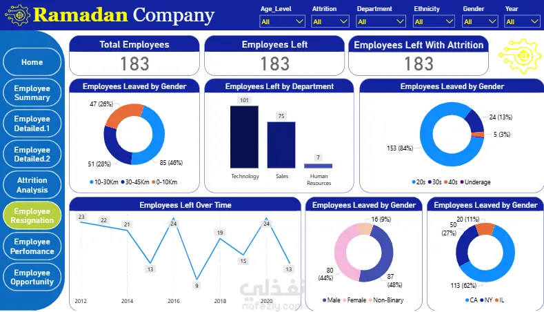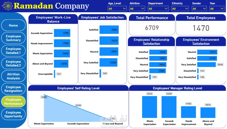 هذا المشروع عبارة عن تحليل شامل لبيانات الموارد البشرية لشركة رمضان، يهدف إلى استخلاص رؤى قيّمة حول الموظفين، واتجاهات دوران العمل، وتوزيع الرواتب، ومؤشرات الأداء، وفرص التدريب، وغير ذلك.