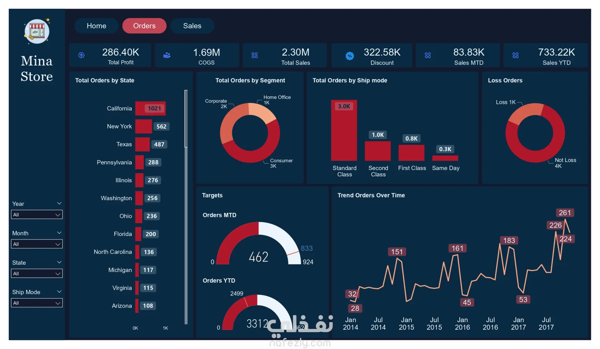 تتبع إجمالي المبيعات والأرباح والطلبات بمرور الوقت.
