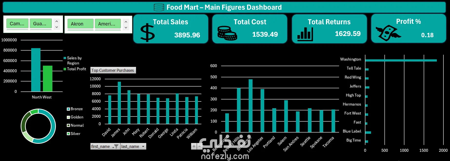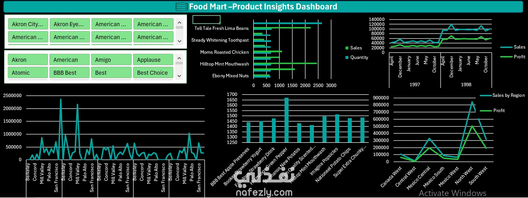 تحليل بيانات مبيعات Food Mart وتصميم داشبورد تفاعلي يوضح أداء الفروع والمنتجات.