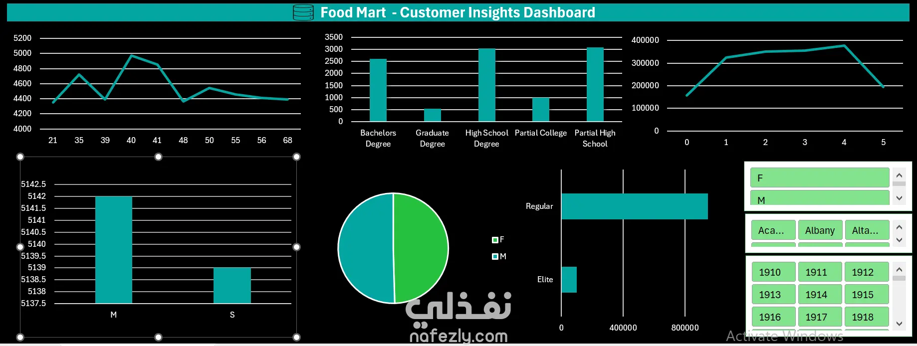 في مشروع Food Mart اشتغلت على تحليل بيانات مبيعات سلسلة متاجر أغذية، بهدف فهم أداء الفروع والمنتجات والعملاء على مدار فترات زمنية مختلفة. بدأت بتنظيف البيانات وترتيب الأعمدة والتأكد من إنها جاهزة للمعالجة، لأن البيانات كان فيها بعض التكرارات والقيم الناقصة اللي لازم تتظبط قبل أي تحليل. بعدها قمت ببناء العلاقات بين الجداول بشكل يوضح الترابط بين الطلبات، الفروع، الفئات، العملاء، والزمن. من خلال التحليل قدرت أجاوب على أسئلة مهمة زي: إيه المنتجات الأفضل مبيعًا خلال السنة؟ أي الفروع بيحقق أعلى مبيعات؟ إزاي بيتغير أداء المبيعات حسب الشهور؟ إيه الفئات اللي عليها أكبر طلب؟ هل في موسمية واضحة للبيع؟ بعد ما طلعت المؤشرات، صممت داشبورد تفاعلي في Excel بيجمع كل الأرقام في صفحات منظمة، بحيث المستخدم يقدر يشوف الأداء سواء على مستوى المنتج، الفرع، الفئة، أو التاريخ. الهدف الأساسي من المشروع كان تحويل بيانات Food Mart من جداول خام إلى رؤية واضحة تساعد الإدارة في تحسين التخطيط وزيادة المبيعات. نوع العمل: تحليل بيانات مبيعات حقيقية. تنظيف وتجهيز البيانات. بناء نموذج علاقات بين جداول متعددة. تحليل الفروع والمنتجات والفئات الزمنية. حساب المقاييس باستخدام DAX. تصميم داشبورد تفاعلي متعدد الصفحات. ميزات العمل: تمثيل بصري واضح لأداء الفروع والمنتجات. استخلاص رؤى عملية تساعد في تحديد الفئات الأكثر ربحية. تحليل موسمية المبيعات عبر الشهور. بناء Measures دقيقة لتقييم الإيرادات والأداء. واجهة تفاعلية تسهل اكتشاف البيانات بسرعة. عرض مختصر لأهم Insights بدون تعقيد. طريقة التنفيذ: استيراد بيانات Food Mart وتجهيزها فيExcel. تنظيف البيانات ومعالجة القيم المفقودة والمكررة. بناء نموذج علاقات بين الجداول (Sales – Stores – Products – Time). إنشاء Measures باستخدام DAX (Revenue – Quantity – Growth Rate …). تحليل الأداء حسب المنتج، الفرع، الفئة، والزمن. تصميم داشبورد تفاعلي يعرض أهم المؤشرات على أكثر من صفحة.