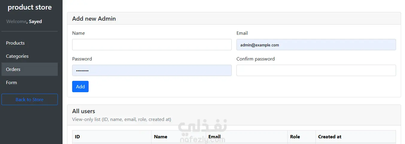 لوحة تحكم سهلة لإدارة المنتجات والطلبات