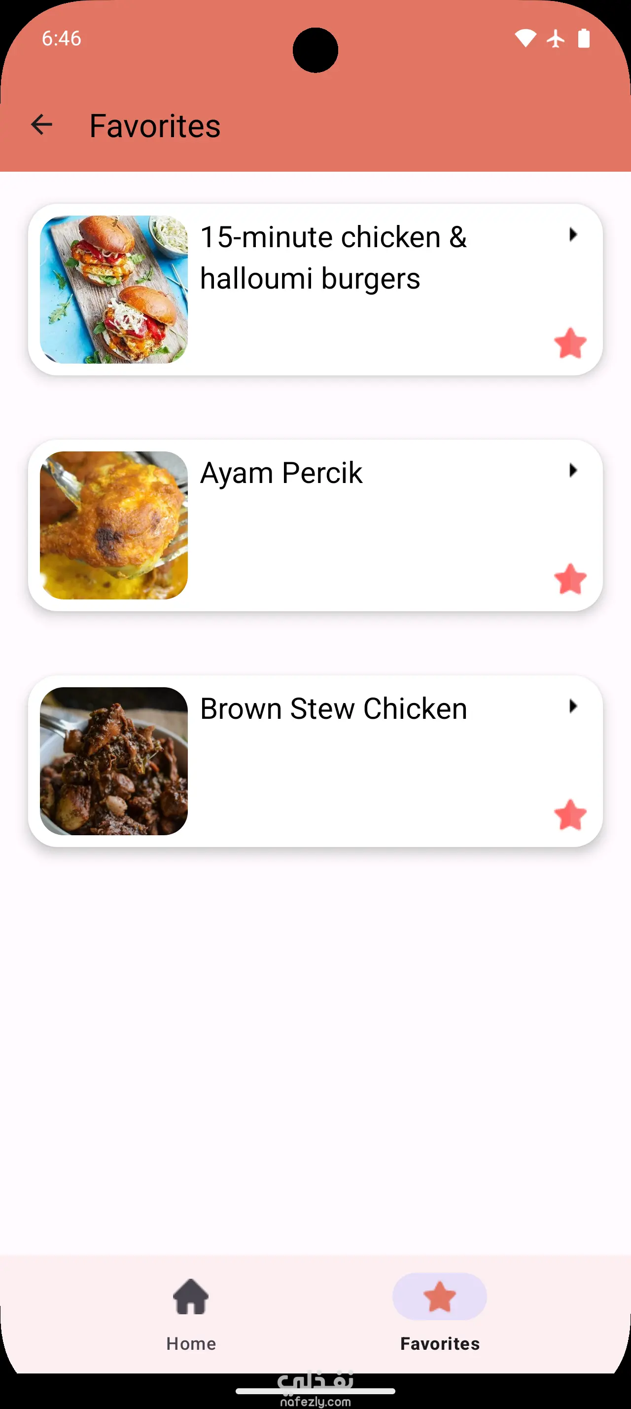 تطبيق تتبع تصفح وصفات الطعام المختلفة مع امكانية البحث واضافة للمفضلة