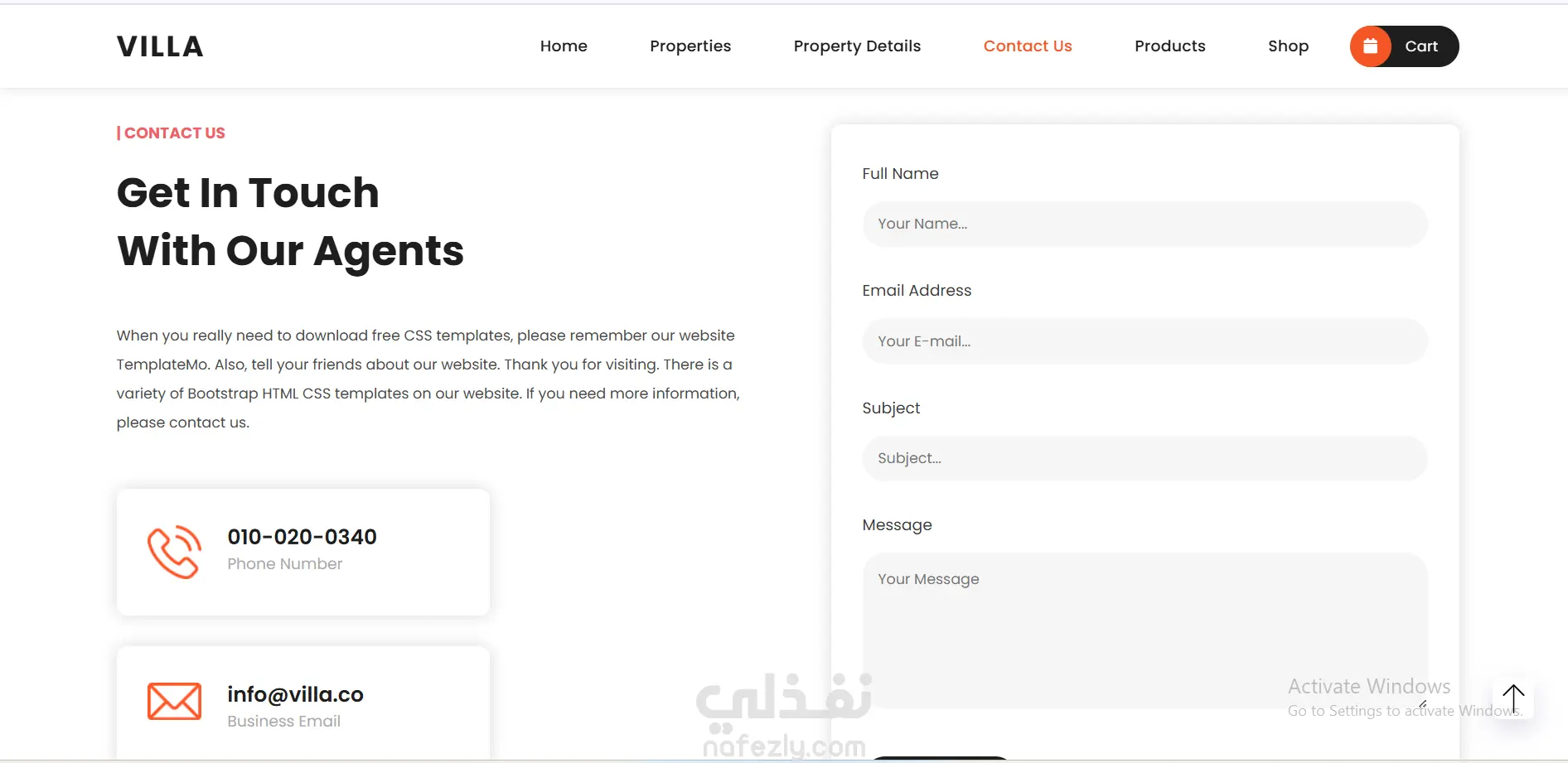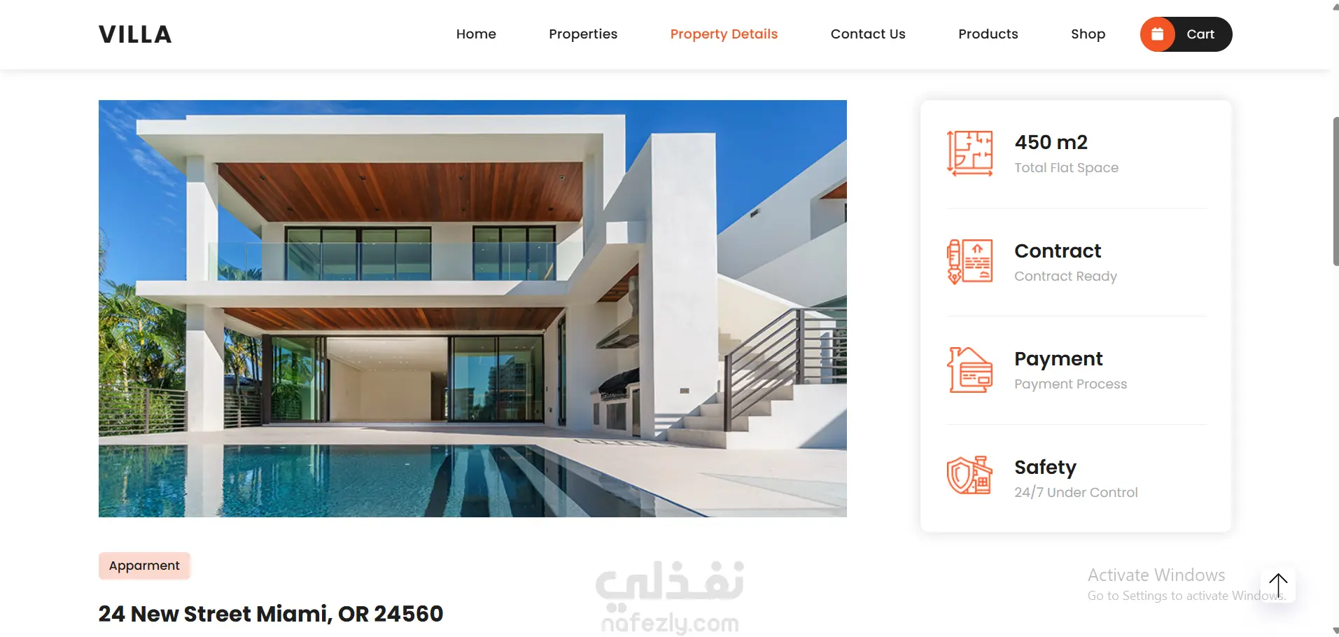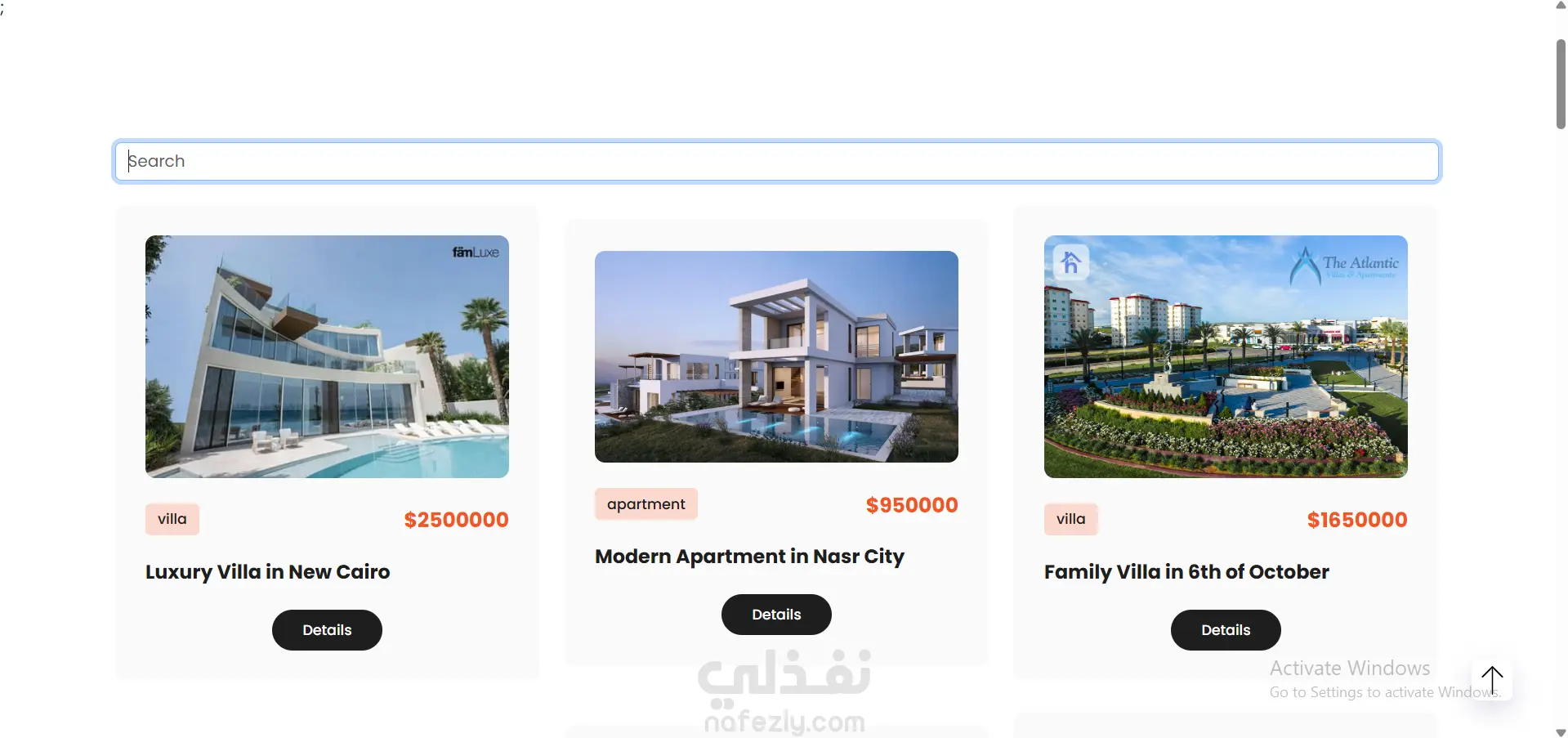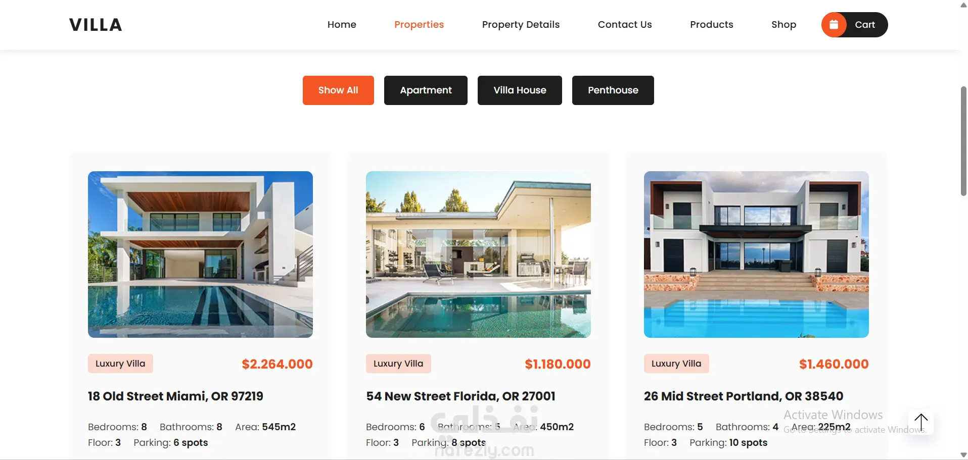 قمت بتطوير واجهة موقع عقارات احترافي بالكامل باستخدام React.js وBootstrap، مستوحى من تصميم قالب Villa Agency Template.