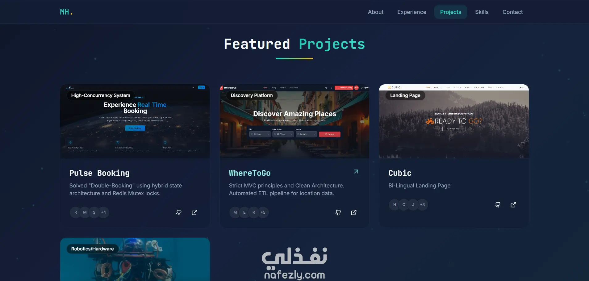 قمت بتصميم و تنفيذ معرض أعمال شخصي عالي الأداء لاستعراض المشاريع البرمجية المعقدة بأسلوب نظيف وتفاعلي. الهدف الرئيسي من المشروع كان تجاوز القوالب التقليدية وبناء واجهة مستخدم حية تعكس عقلية هندسية احترافية، مع التركيز على كتابة كود نظيف، بنية معيارية، وتحريكات انسيابية دون أي تأخير (Zero-latency). تم بناء التطبيق باستخدام React وTypeScript، مع تصميم بصري بأسلوب Deep Ocean باستخدام نظام مخصص من Tailwind CSS. اعتمدت في العرض على تخطيط شبكي حديث (Bento Grid) لعرض المشاريع، مما يسمح للمستخدمين بالتفاعل مع المحتوى بديناميكية عالية. أبرز المميزات التقنية: - واجهة مستخدم تفاعلية (Interactive UI): استخدام مكتبة Framer Motion لتنفيذ تأثيرات ظهور معقدة عند التمرير (Scroll Reveals)، وتحريكات متتابعة، وتأثيرات الزجاج (Glassmorphism) مع الحفاظ على أداء ثابت بمعدل 60 إطاراً في الثانية (60FPS). - بنية برمجية قوية: الاعتماد على مكونات Shadcn UI لضمان تصميم مرن، قابل للوصول (Accessible)، وسهل الصيانة. - نظام تواصل بدون خادم: دمج خدمة EmailJS مع نظام تحقق قوي باستخدام Zod Schema، مما يتيح تواصلاً آمناً ومباشراً عبر النماذج دون الحاجة ل Backend تقليدي. - هندسة متجاوبة: تحسين كامل لجميع أحجام الشاشات، حيث يتحول التصميم بذكاء من شبكة معقدة على سطح المكتب إلى واجهة رأسية انسيابية على الهواتف المحمولة. التقنيات المستخدمة: React.js TypeScript Tailwind CSS Framer Motion Shadcn UI EmailJS