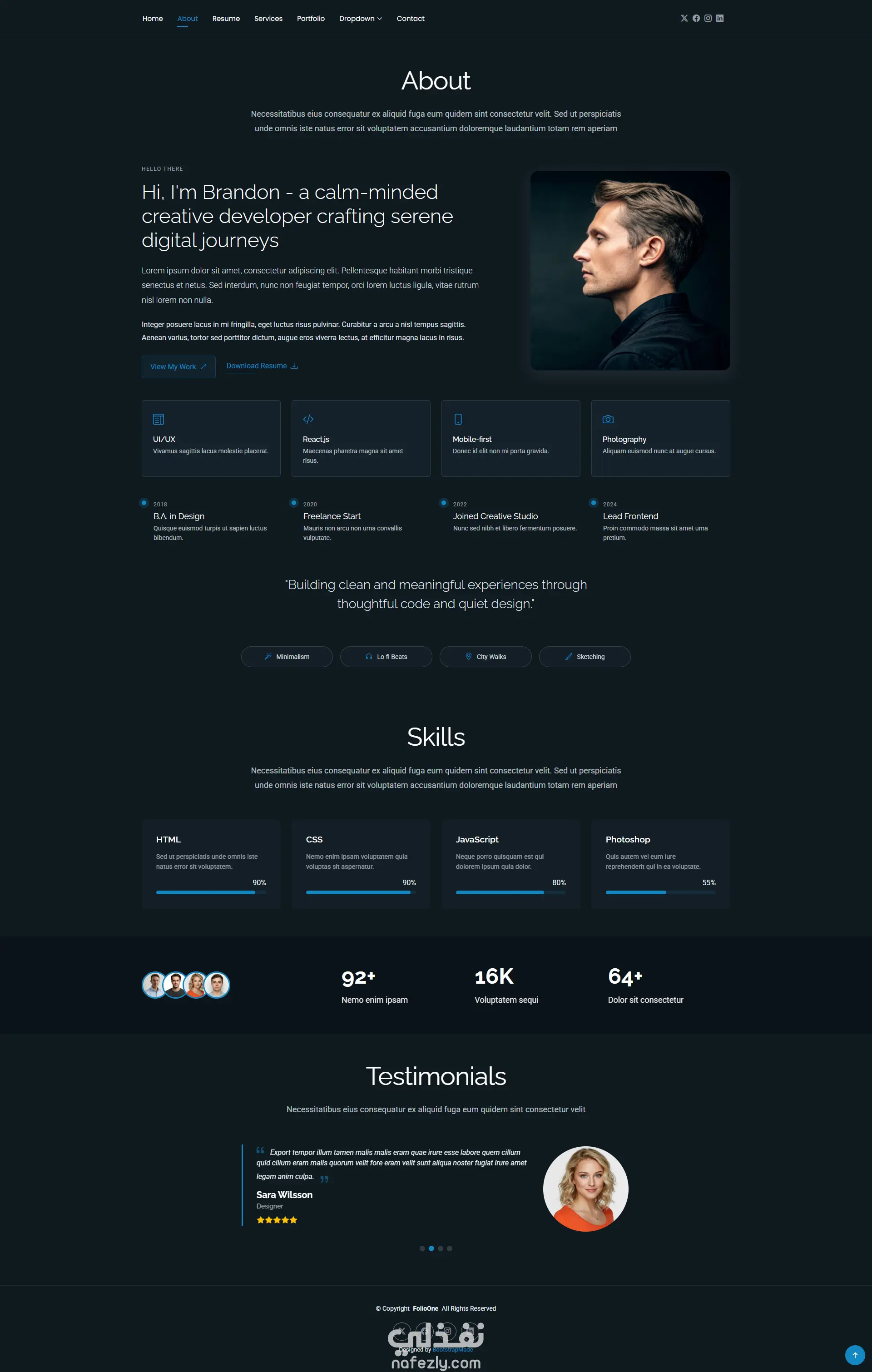موقع شخصي حديث واحترافي مصمم لعرض المهارات والمشاريع والخبرات بشكل جذاب وواضح.