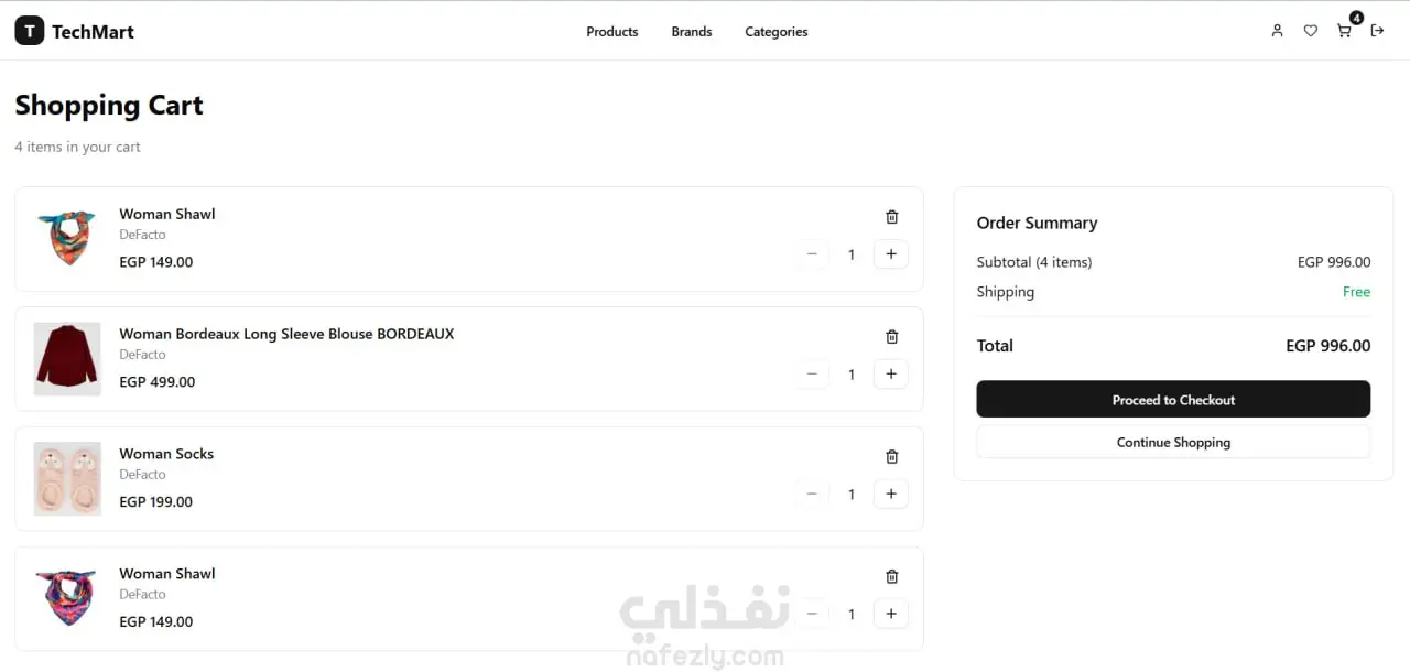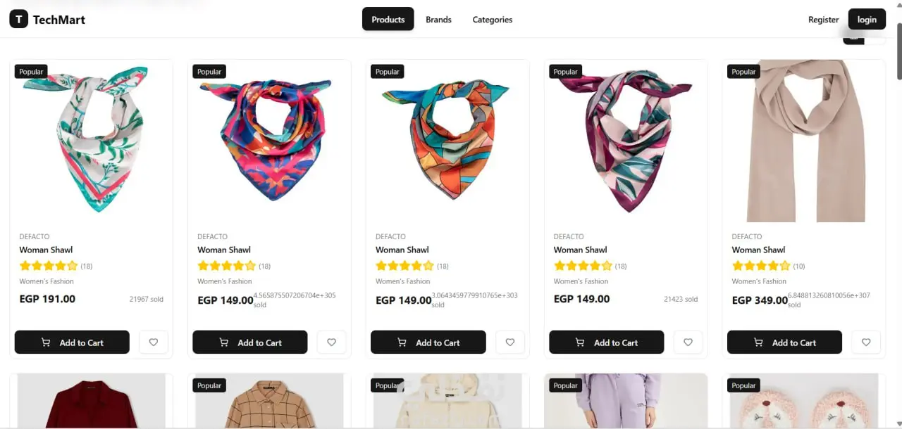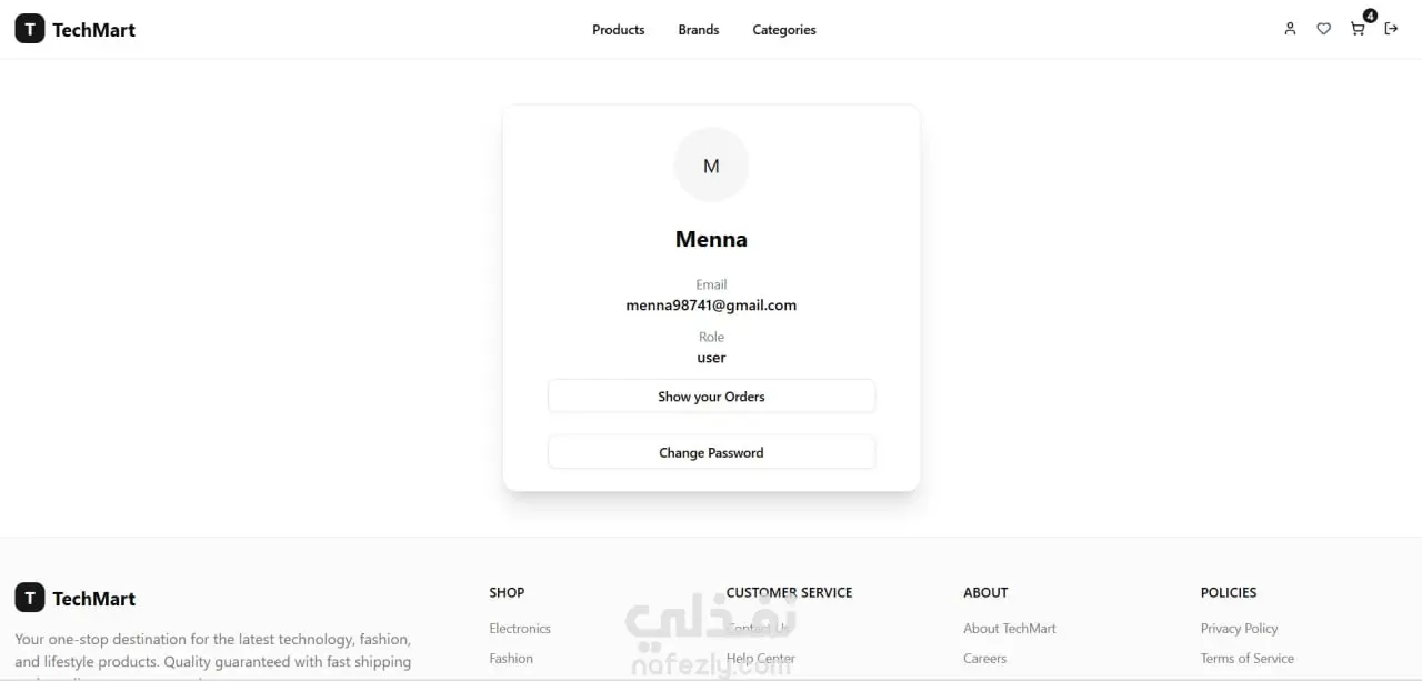 Authentication: Secure login/register system using NextAuth, with full form validation. Cart System: Add, remove, update quantities, or clear the entire cart. Wishlist: Save and manage favorite products easily. User Profile: View order history and update password. Product Page: Detailed product view with clean UI. Categories & Brands: Browse and filter products efficiently. Online Payment: Integrated Stripe for safe and seamless checkout. Protected Routes: Cart, profile, and wishlist accessible only to logged-in users. API Integration: Worked extensively with APIs for authentication, cart & wishlist management, user profile, and payment.