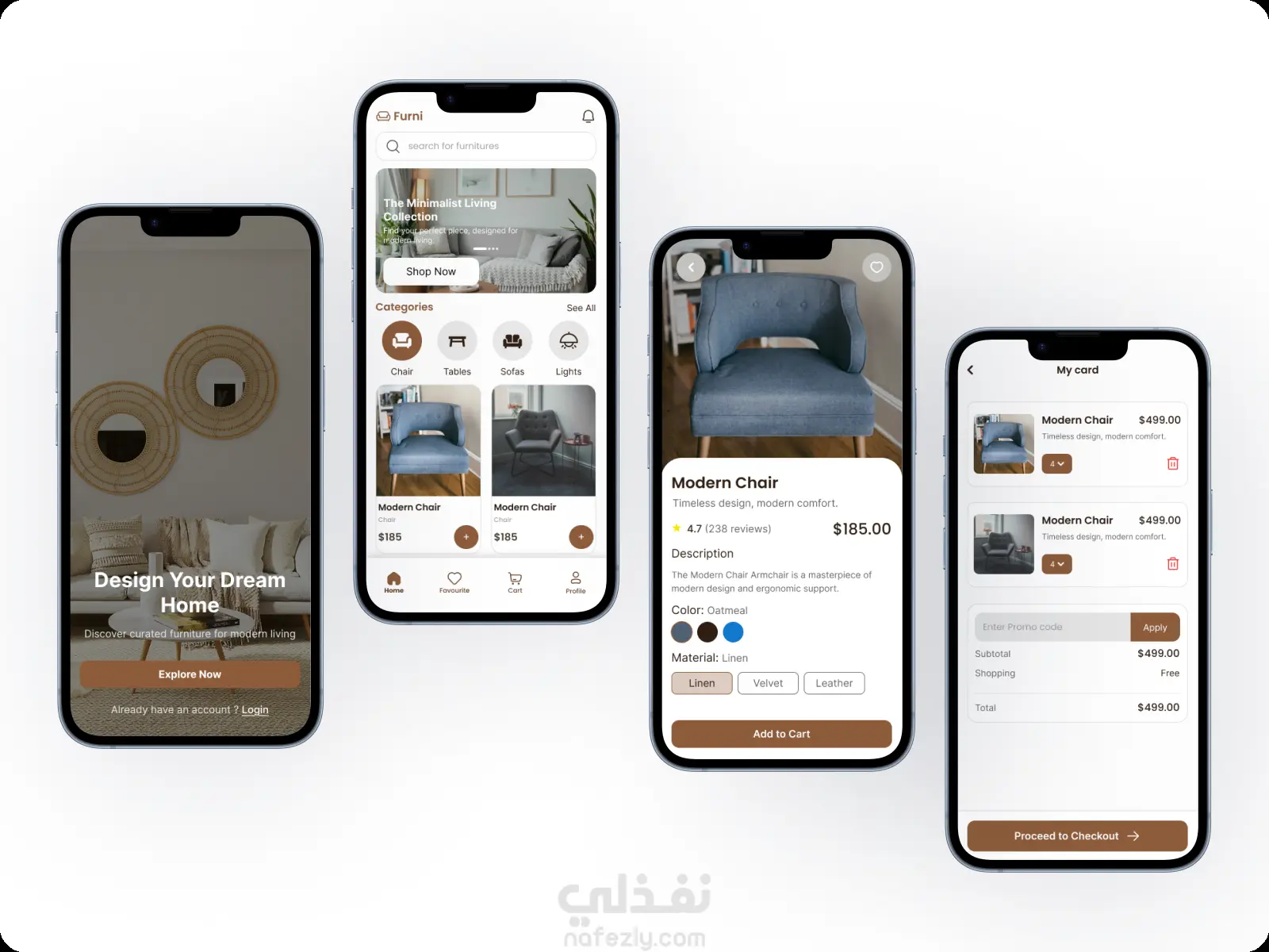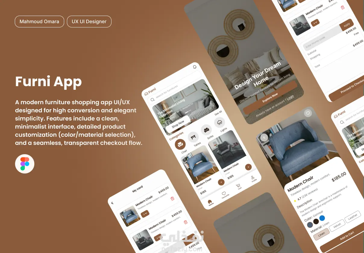 Furni: تصميم واجهة وتجربة مستخدم لتطبيق تجارة إلكترونية للأثاث العصري