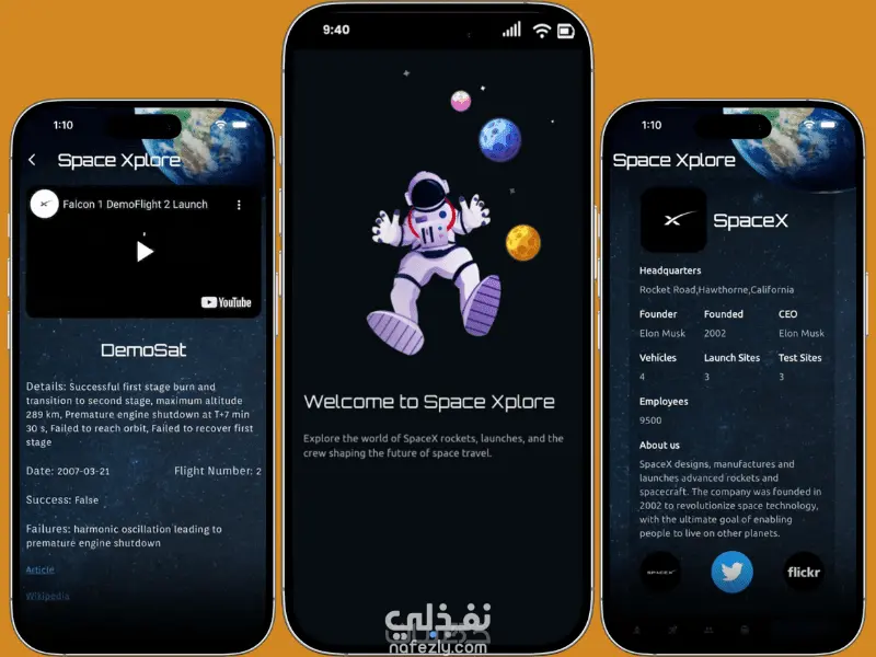 تطبيق موبايل مبني باستخدام Flutter يتيح للمستخدم استكشاف عالم SpaceX بشكل بسيط وسلس.