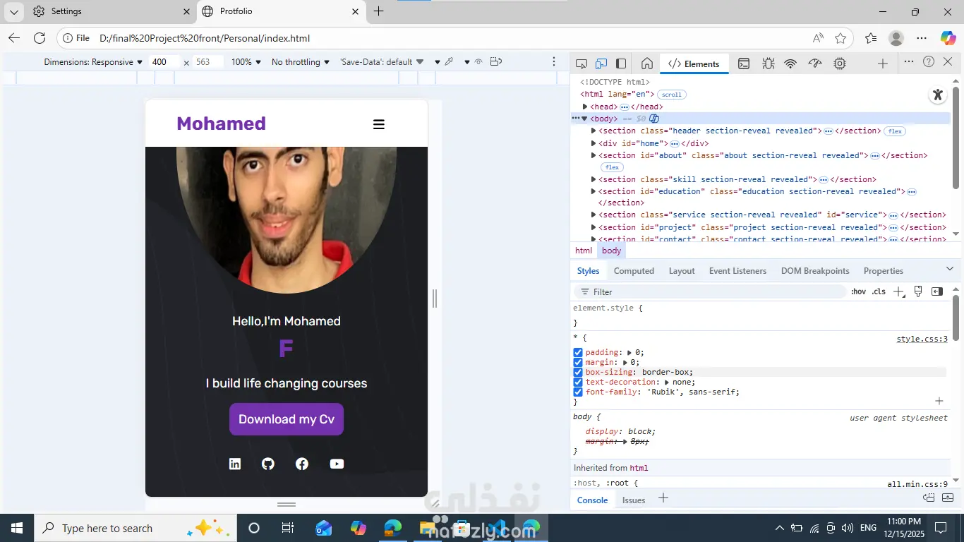 تصميم وتنفيذ Landing Page (Portfolie)