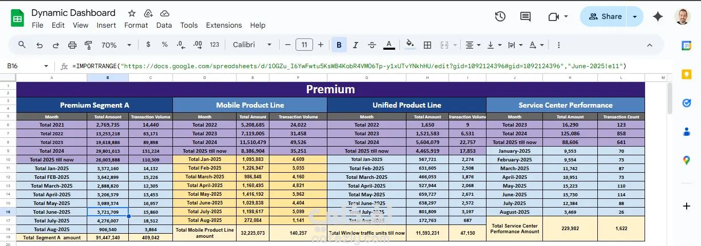 لوحة تحكم مركزية لمتابعة مشاريع الشركة – Dashboard ديناميكية بتحديث تلقائي