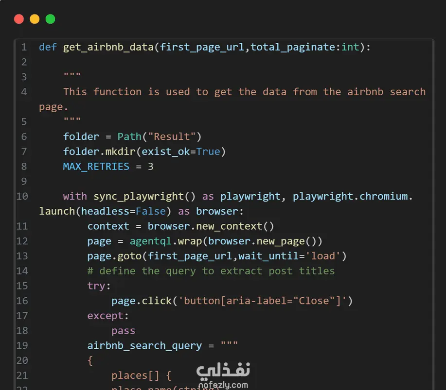 أداة ذكية لاستخلاص بيانات Airbnb باستخدام Playwright للتعامل مع المحتوى الديناميكي، بالإضافة إلى استخدام AI API (AgentQl) لتحسين دقة استخراج البيانات. يتم معالجة البيانات باستخدام مكتبة pandas وحفظها في ملف CSV يحتوي على الأعمدة التالية: الاسم، التفاصيل، السعر، عدد المراجعات، التقييم. تتميز الأداة بقدرتها على التعامل مع المحتوى المتغير، وزيادة الدقة بفضل الذكاء الاصطناعي، مما يجعلها مثالية لأغراض أبحاث السوق أو تحليل البيانات. سريعة، موثوقة، وتنتج بيانات منظمة.