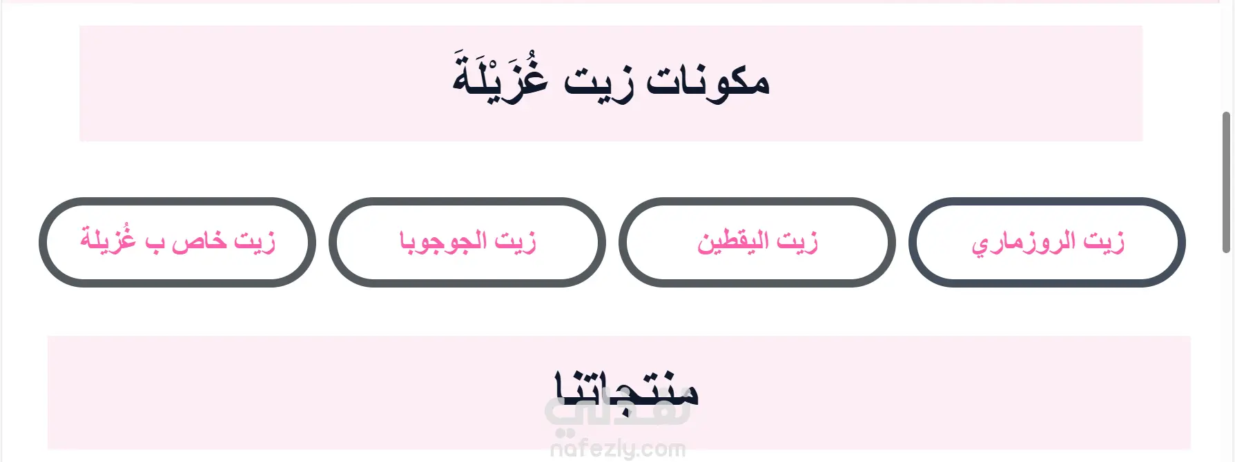 عرض مكوّنات الزيت (الروزماري – اليقطين – الجوجوبا – خلطة غُزَيْلَةَ الخاصة)