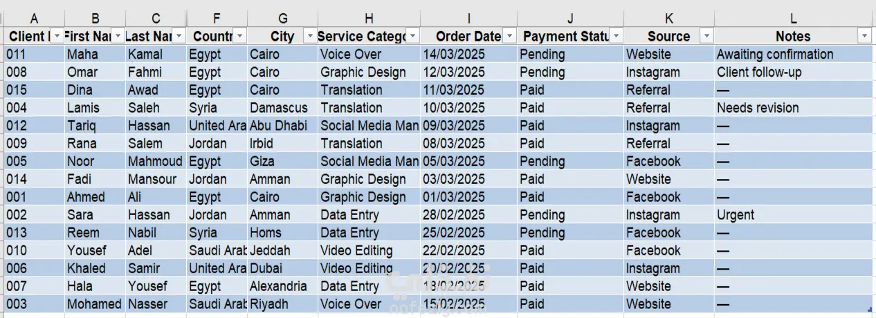 قمت بتنفيذ مشروع إدخال وتنظيم بيانات لشركة مختصة بالعمل الحر، بهدف تسهيل إدارة معلومات الموظفين ومساعدة الإدارة للوصول للبيانات بشكل منظم وسريع، عملت فيه على إدخال بيانات الموظفين بدقة و احترافية و قمت بتنظيمها داخل ملفات Excel بما يتناسب مع متطلبات الشركة.