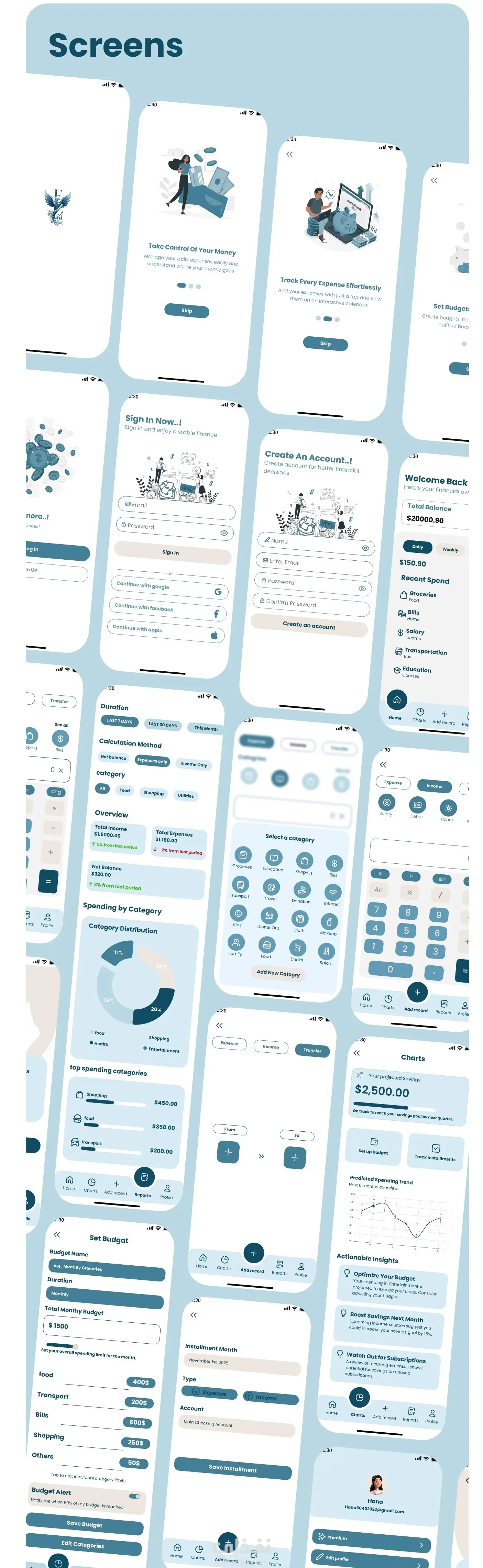 تصميم تطبيق إدارة مصروفاتهم اليومية Finora