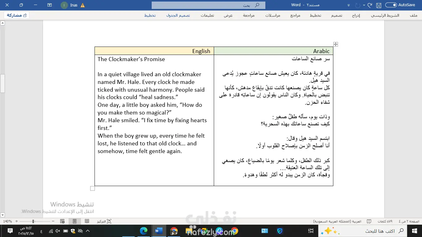 ترجمة قصة سر صانع الساعات
