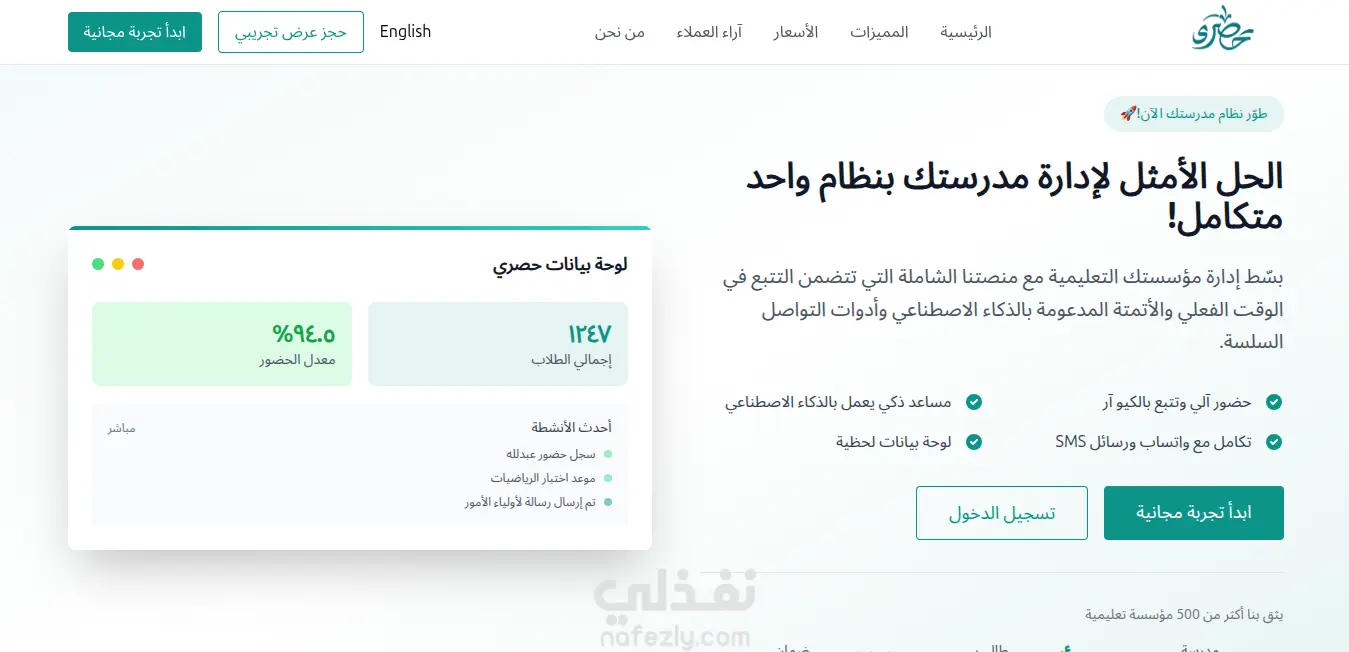 تطبيق منصة تعليمية سعودية يشمل داش بورد لادارة المدرسة, داش بورد للادمن لمتابعة المدارس المسجلة في النظام, تطبيق موبايل(نسخة اندرويد وios) للمعلمين لادارة الصفوف والطلاب الخاص بهم