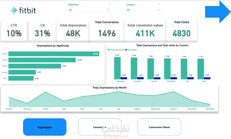 يهدف هذا المشروع إلى تحليل أداء التسويق الرقمي لشركة Fitbit من خلال لوحات معلومات تفاعلية، وذلك لتقييم فعالية الحملات التسويقية عبر عدة أبعاد مختلفة. يركز التحليل على قياس كفاءة الحملات حسب الخصائص الديموغرافية، والفترات الزمنية، وفئات المنتجات، مما يتيح فهماً شاملاً لأنماط تفاعل العملاء ومعدلات التحويل.