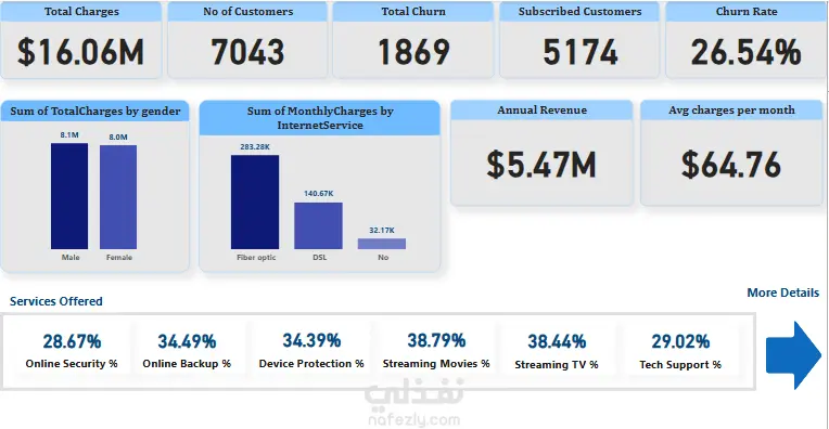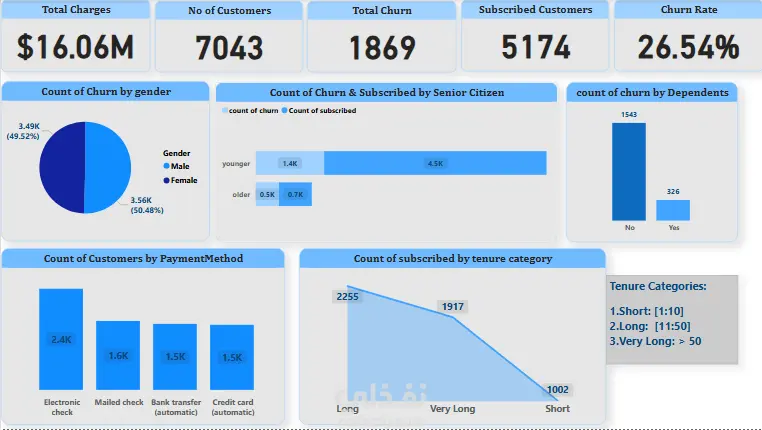 تركز التحليلات على اكتشاف أسباب مغادرة العملاء، وفهم سلوكهم الشرائي، وتقييم تأثير جودة الخدمات والعروض المقدمة على معدلات الاستمرار. وتساعد النتائج المستخلصة الشركة على تقليل معدل تسرب العملاء، وتحسين باقات وخدمات الاتصالات، ورفع مستوى رضا العملاء، مما يدعم اتخاذ قرارات استراتيجية مبنية على البيانات ويعزز النمو المستدام.