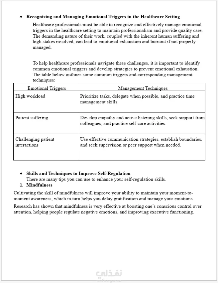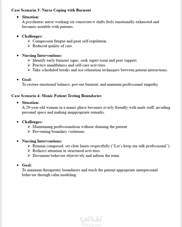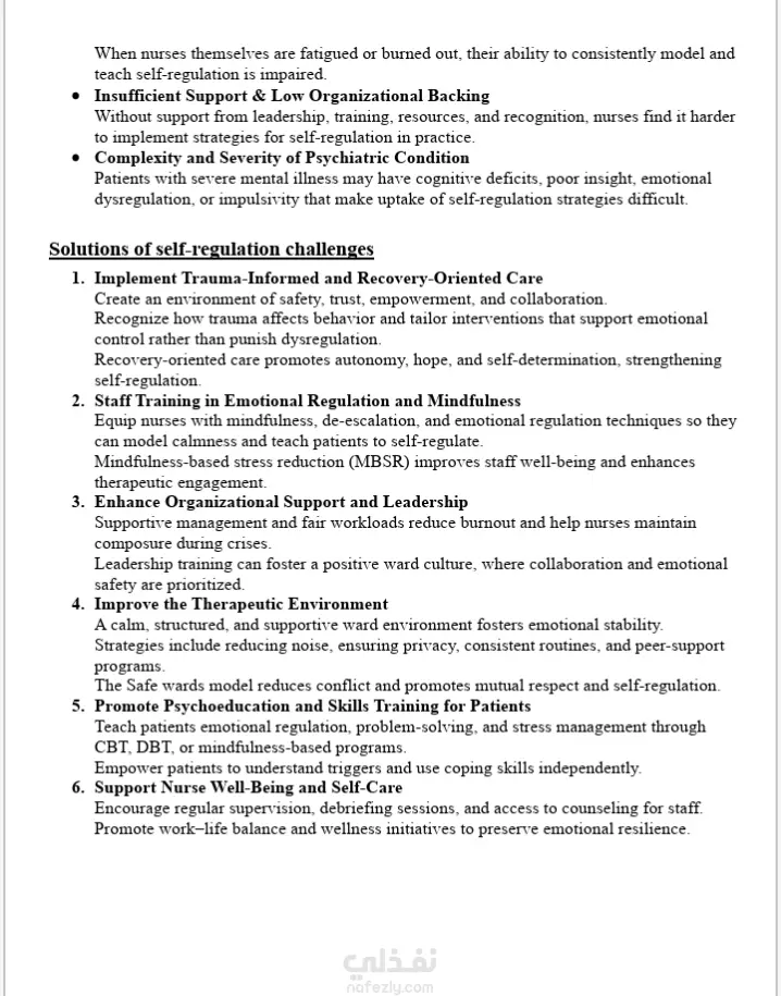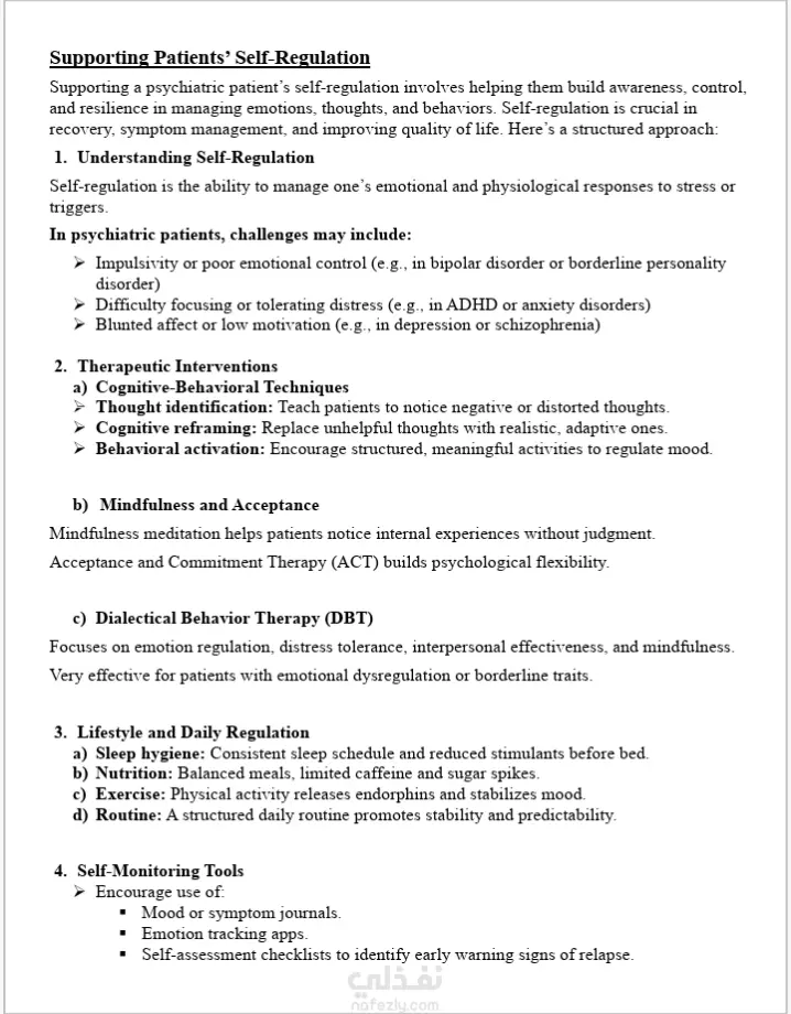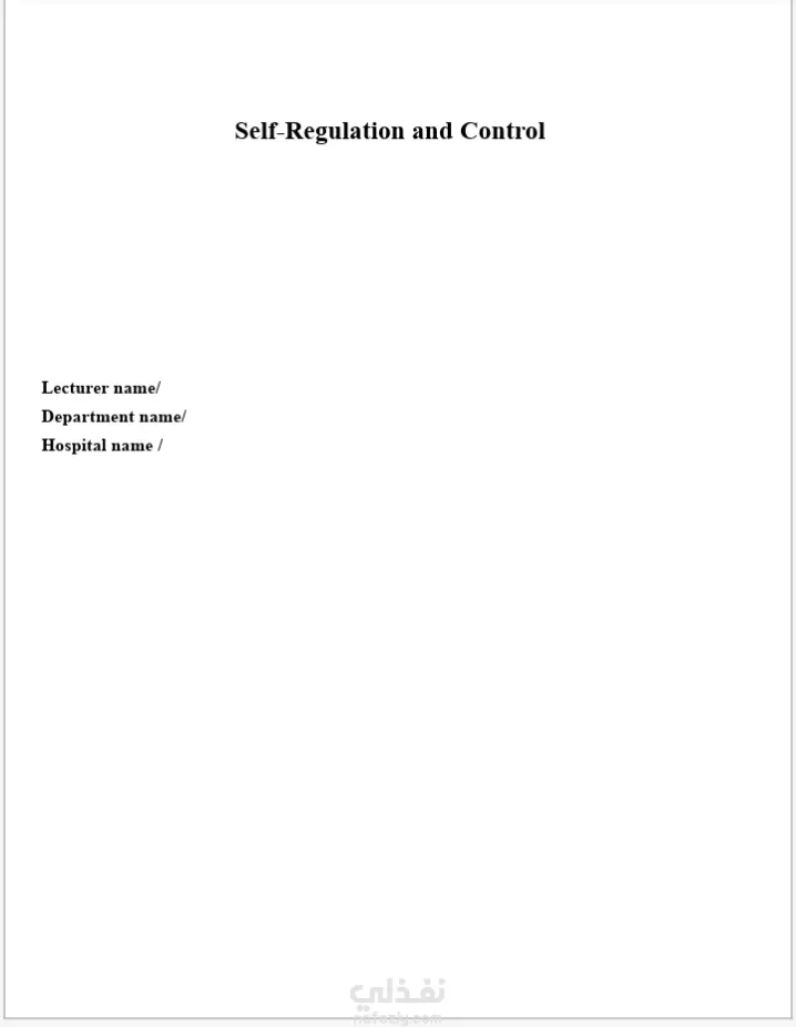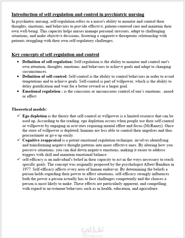 فالمحاضرة مكونة من التعريف بالتحكم في النفس وطبيعة عمل التمريض و مهارات لتحسين التحكم في النفس وايضا كيف يساعد التمريض المريض للتحكم في النفس وسيناريوهات كأمثلة لزيادة تفاعل التمريض أثناء المحاضرة " case scenario" وايضا مزود بالمصادر.