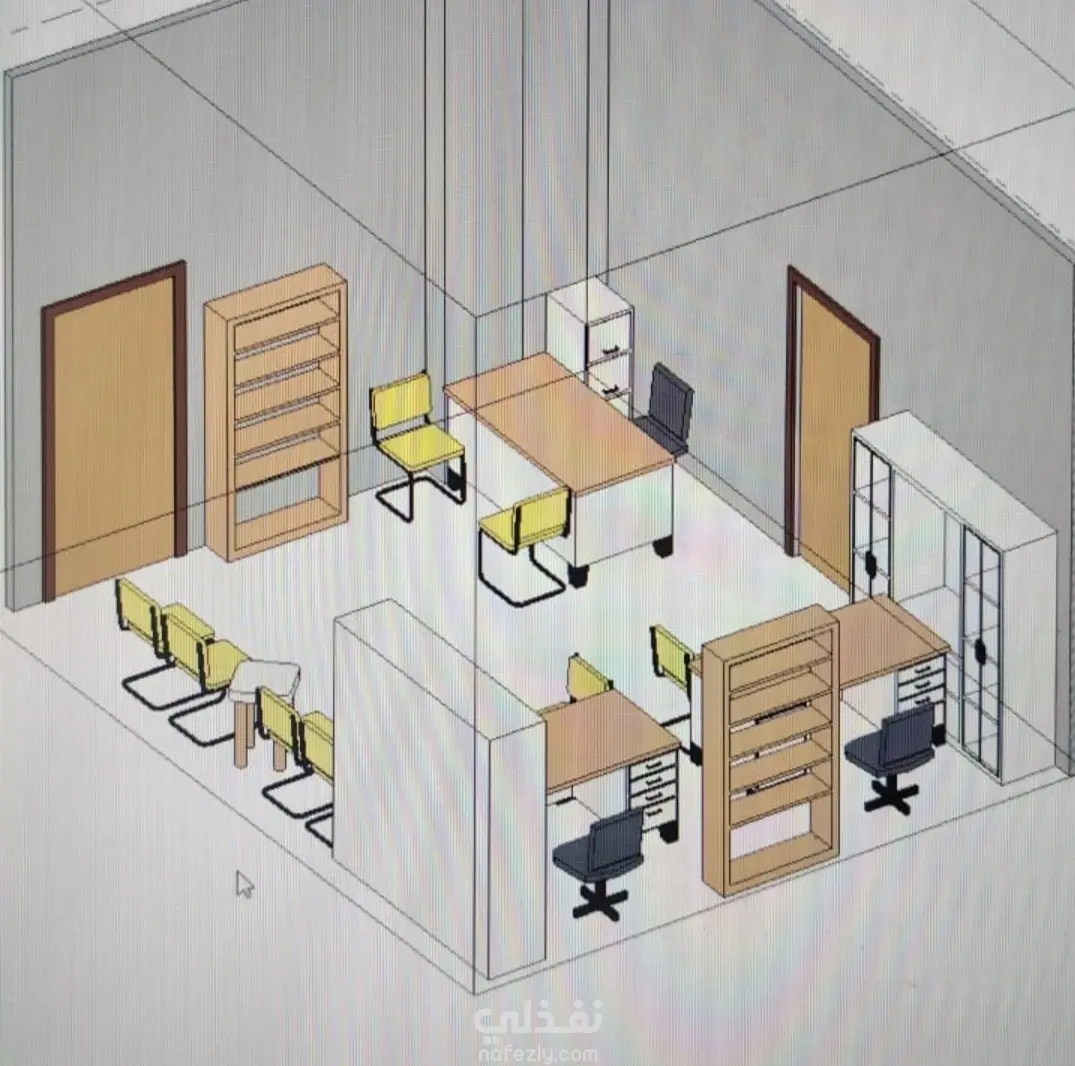 تصميم داخلى لمكتب مكون من عدد ٣ مكاتب