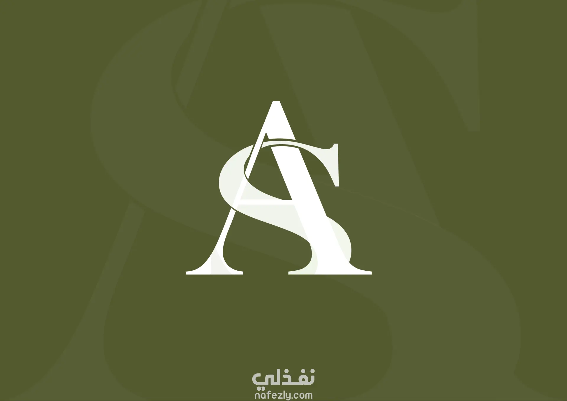 تصميم شعار فني يعتمد على دمج حرفي A وS بأسلوب أنيق وبسيط فوق خلفية زيتونية هادئة. يبرز التكوين التداخل المتقن بين الحروف بخط كلاسيكي يعكس التوازن بين الفخامة والحداثة، مما يمنح التصميم طابعًا راقيًا يصلح للشعارات أو الهوية البصرية الراقية.