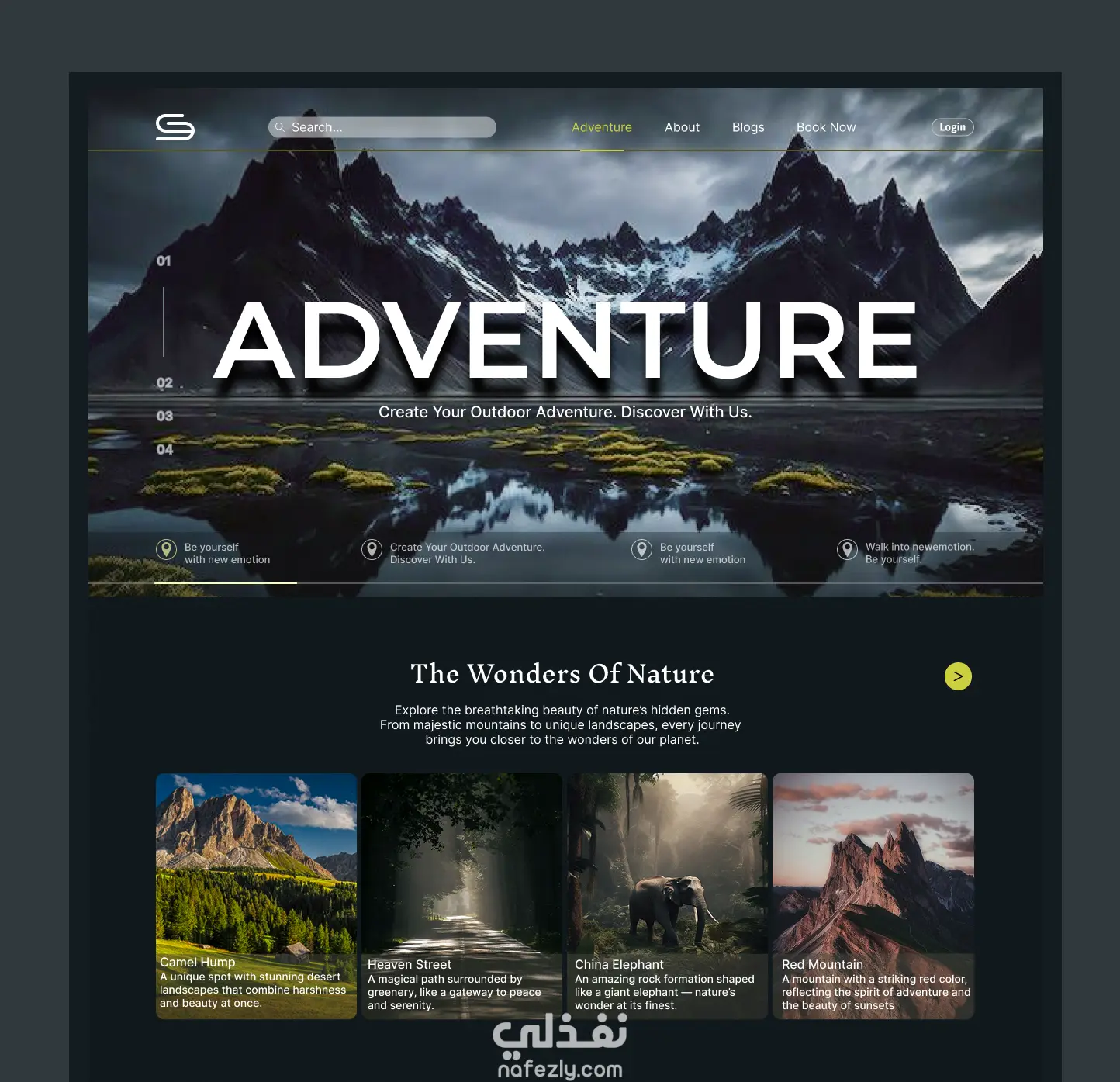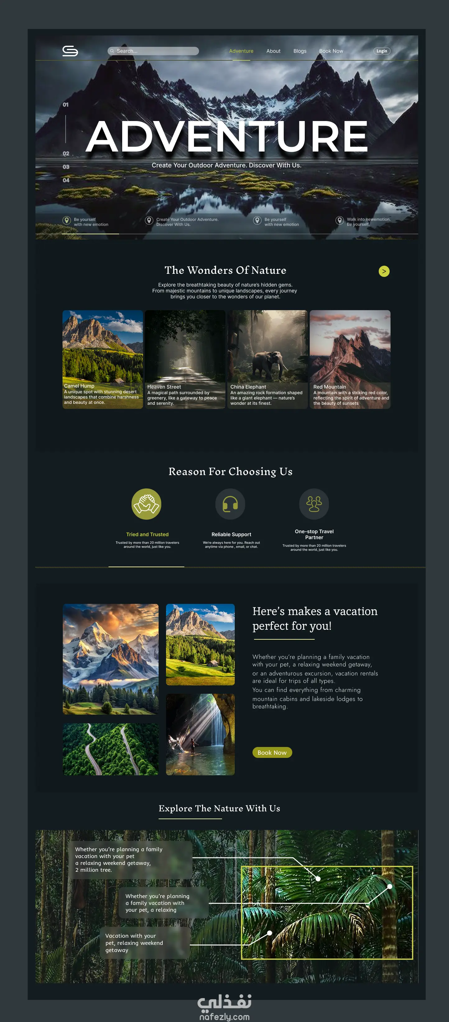 تم تصميم هذه صفحة الهبوط لتقديم تجربة بصرية قوية تعكس عالم المغامرة والطبيعة، بداية من الـ Hero Section بصورة سينمائية جذابة وعنوان رئيسي واضح يلفت الانتباه من أول لحظة. الصفحة مبنية بتسلسل ذكي يساعد الزائر على الاستكشاف واتخاذ القرار وتشمل: -عرض الوجهات السياحية من خلال كروت منظمة وصور عالية الجودة -إبراز قيمة المشروع عبر قسم مخصص لأسباب الاختيار وبناء الثقة -محتوى تعريفي داعم للتجربة مع زر دعوة لاتخاذ إجراء واضح (Book Now) -توزيع بصري متوازن بين النصوص والصور لتحسين تجربة المستخدم. تم التركيز على: -هوية بصرية داكنة تبرز جمال الصور الطبيعية -استخدام تايبوجرافي حديث وواضح -تجربة مستخدم سلسة وسهلة التصفح -تصميم مناسب للعرض على جميع الشاشات هذا التصميم مناسب لمشاريع السياحة، السفر، الرحلات، والمواقع التي تعتمد على الإلهام البصري وتحفيز التفاعل.