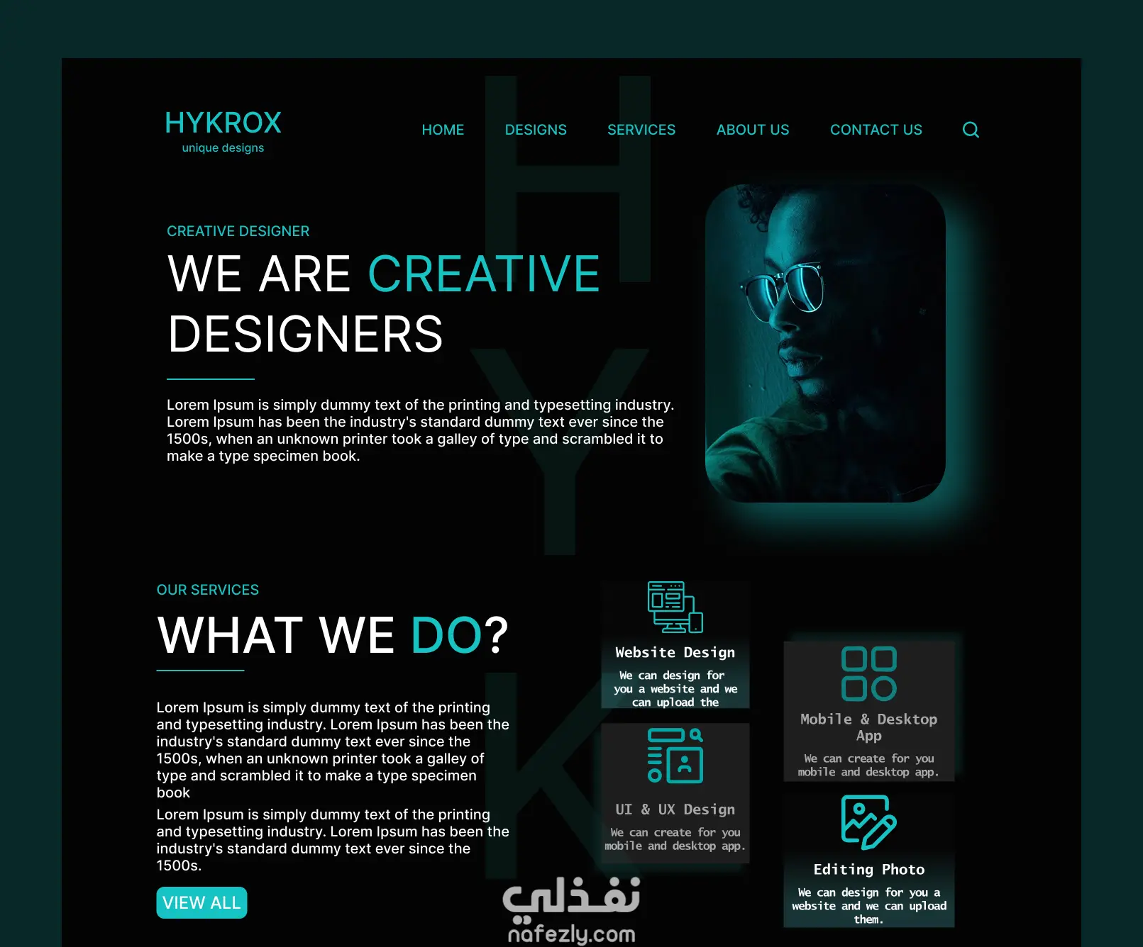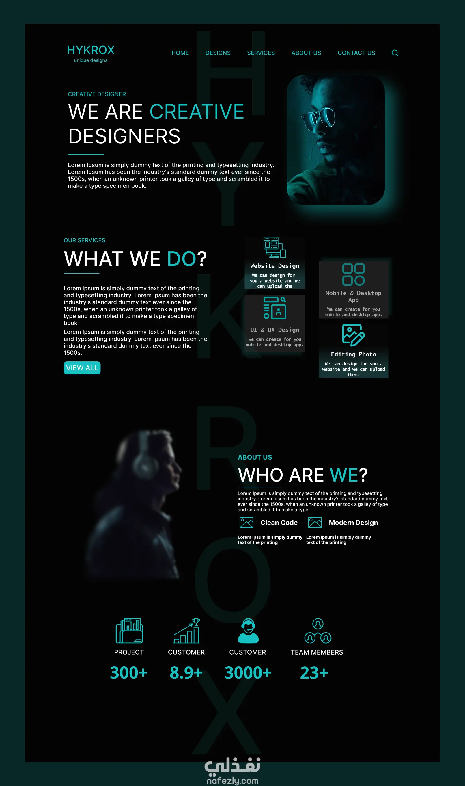 تم تصميم صفحة هبوط عصرية لوكالة إبداعية تعتمد على إبراز الهوية البصرية والاحترافية من أول نظرة باستخدام ألوان داكنة مع لمسات نيون تعكس الطابع الإبداعي والعصري للعلامة التجارية. تبدأ الصفحة بـ Hero Section قوي يحتوي على عنوان واضح ورسالة مباشرة تعبّر عن هوية الوكالة وخدماتها مع توزيع بصري متوازن بين النص والصورة لخلق انطباع احترافي. تشمل الصفحة الأقسام التالية: قسم تعريفي بالخدمات مثل تصميم المواقع، UI/UX تطبيقات الموبايل وتحرير الصور تنظيم الخدمات باستخدام أيقونات واضحة وسهلة الفهم قسم “Who Are We” لعرض رؤية الوكالة ونقاط القوة وإبراز المميزات التنافسية مثل التصميم العصري والكود النظيف قسم إحصائيات يعزز الثقة ويعكس حجم الخبرة والإنجازات تم الاهتمام :- -تسلسل بصري يساعد الزائر على فهم الخدمات بسرعة -تايبوجرافي حديث ومتناسق مع هوية الوكالة -تجربة مستخدم سلسة وسهلة التصفح -تصميم متجاوب وقابل للتنفيذ على جميع الشاشات هذا التصميم مناسب للوكالات الإبداعية، شركات التصميم، الفرق الرقمية، والفريلانسرز الباحثين عن واجهة احترافية تعكس قوة علامتهم التجارية.