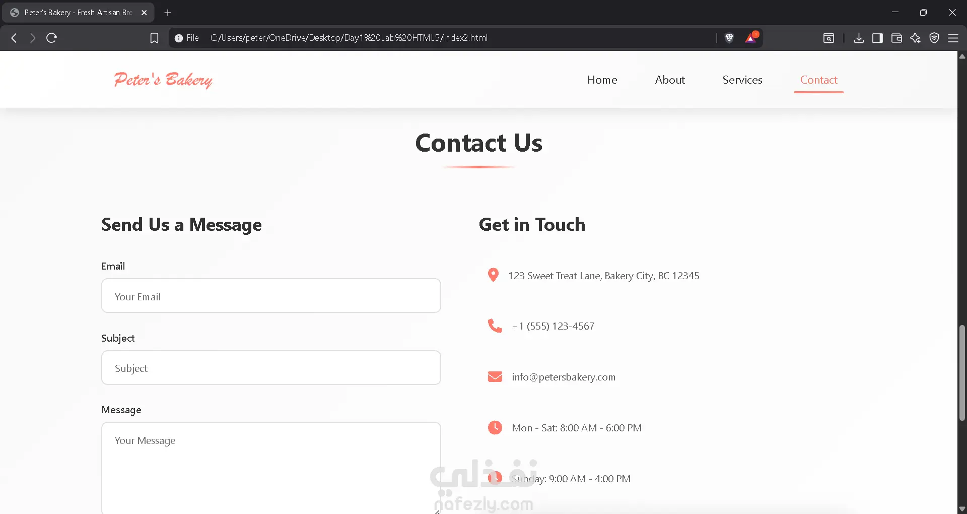 صفحة هبوط تفاعلية لمخبز