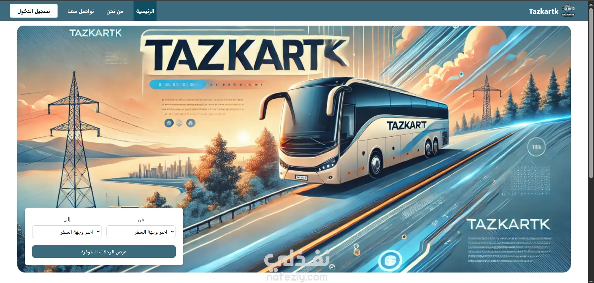 "تزكرتك" هو نظام متكامل لحجز تذاكر الباصات يُمكّن المستخدم من البحث عن الرحلات المتاحة من مختلف الشركات، واختيار المقاعد، والدفع الإلكتروني، وإدارة حجوزاته بسهولة