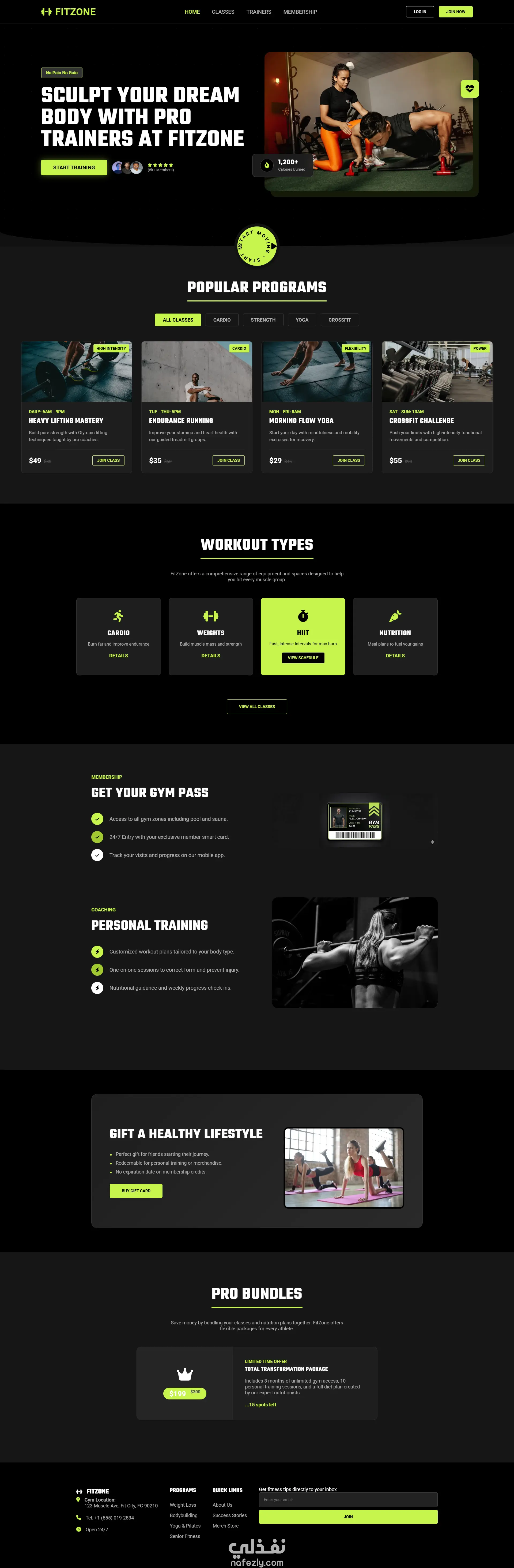هي صفحة هبوط ترويجية لمركز لياقة بدنية (جيم) ، تعرض للزوار برامج التدريب الاحترافية المتنوعة ، وتستعرض باقات العضوية ومزايا التدريب الشخصي