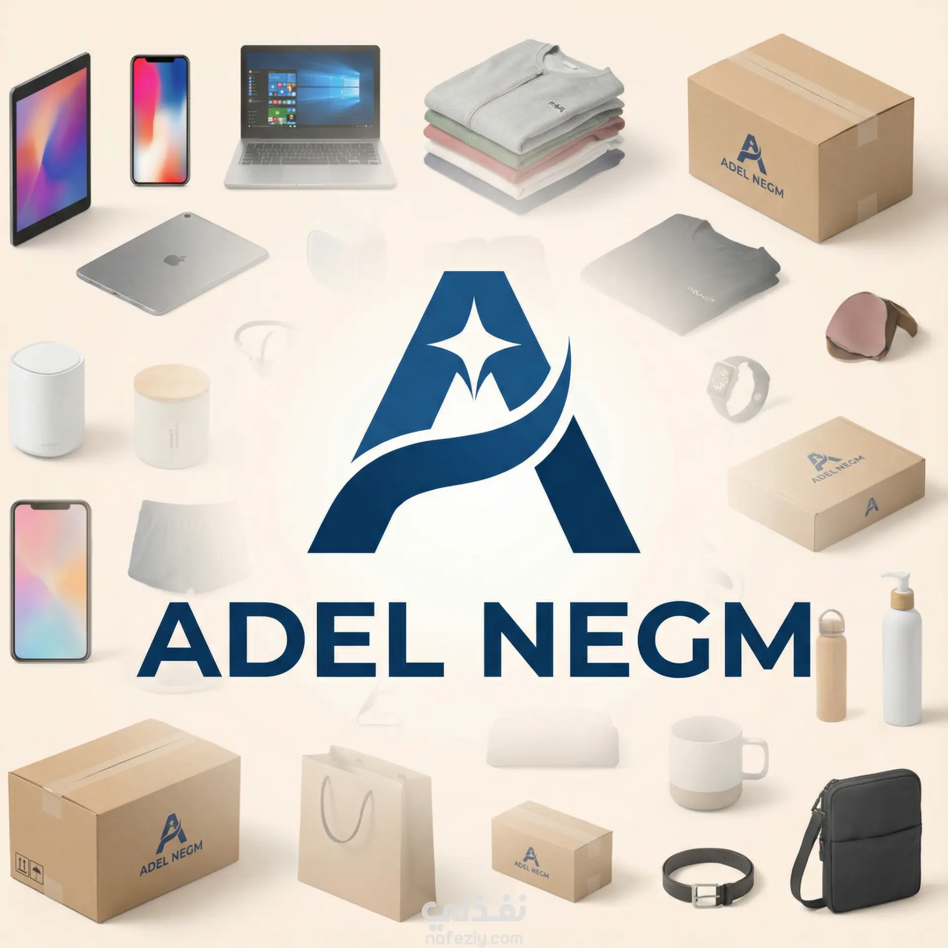 تُظهر الصورة تصميم لوجو احترافي لمتجر إلكتروني متعدد الأقسام يحمل اسم Adel Negm، بهوية بصرية عصرية تعكس الاحترافية والثقة والقوة التجارية. يتوسط التصميم شعار مميز بحرف A بأسلوب أنيق وحديث، يرمز إلى العلامة التجارية والتميز، مع كتابة اسم ADEL NEGM بخط واضح وقوي مناسب للاستخدام التجاري. تحيط باللوجو مجموعة متنوعة من المنتجات المصغّرة التي تمثل أقسام المتجر المختلفة، مثل: الإلكترونيات (هواتف ذكية، لابتوبات، أجهزة لوحية) الملابس والإكسسوارات منتجات نمط الحياة التغليف والشحن بعلامة تجارية مخصصة منتجات استهلاكية متنوعة يعكس التصميم فكرة المتجر الإلكتروني الشامل (Multi-Category E-commerce Store)، ويُبرز تنوع المنتجات واحترافية العرض، مما يجعله مثاليًا للاستخدام في: المتاجر الإلكترونية العلامات التجارية الناشئة صفحات الهبوط (Landing Pages) الإعلانات الرقمية منصات البيع أونلاين يتميز الأسلوب العام بالبساطة، الألوان الهادئة، والتوازن البصري، مع تركيز واضح على العلامة التجارية وبناء الثقة مع العملاء.
