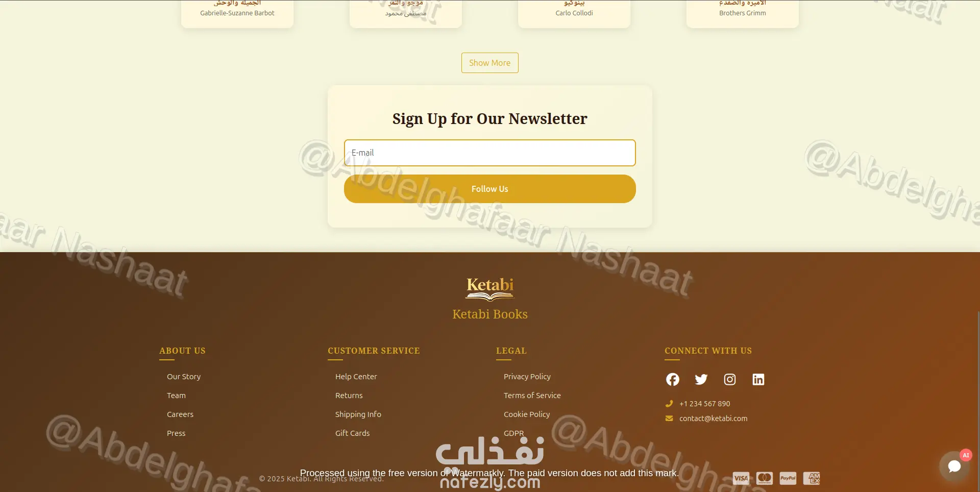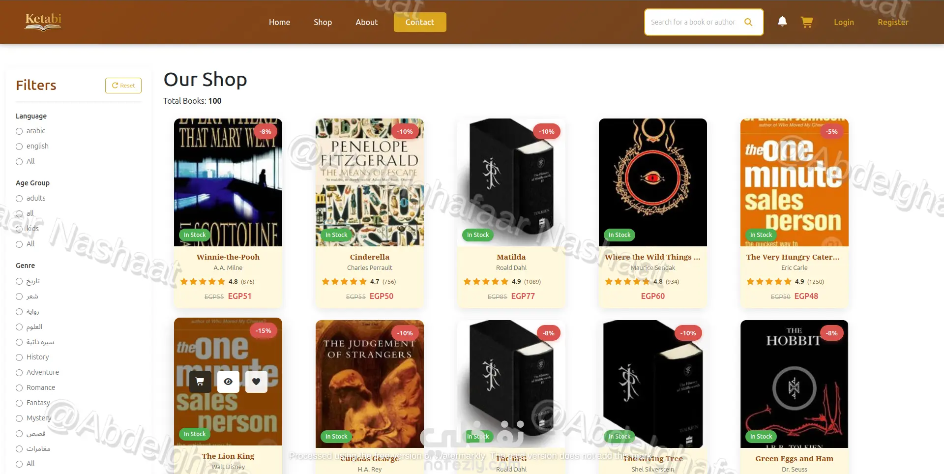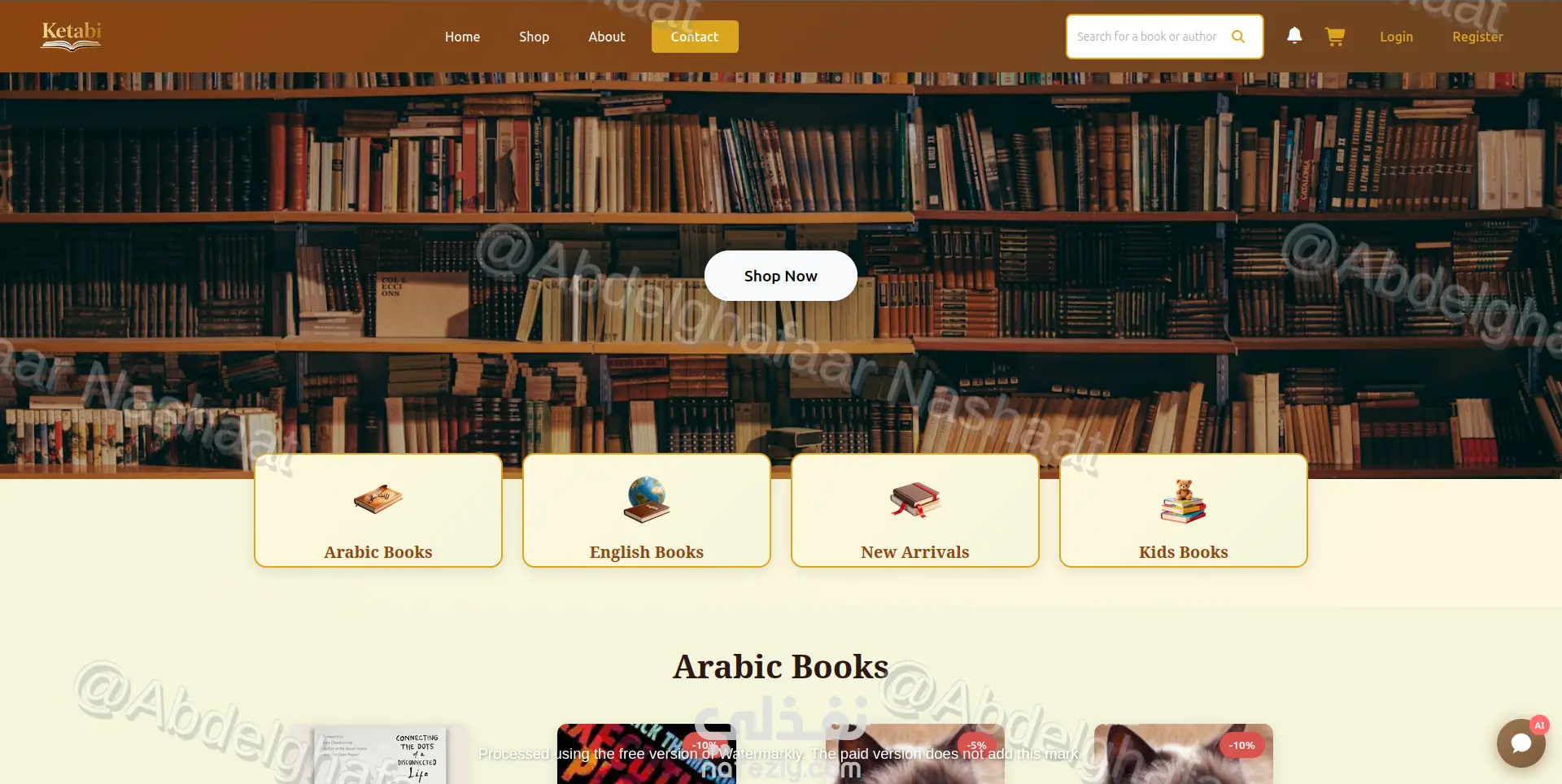 تم تصميم وتطوير منصة مكتبة إلكترونية لعرض وبيع الكتب الورقية والرقمية، مع واجهة مستخدم متجاوبة ومتوافقة مع التصميمات المعتمدة. يشمل النظام إدارة المنتجات، البحث والتصفية، سلة المشتريات، الطلبات، كوبونات الخصم، وربط بوابات الدفع الإلكتروني مع أتمتة معالجة الطلبات وتحديث المخزون لضمان تجربة استخدام سلسة وآمنة.