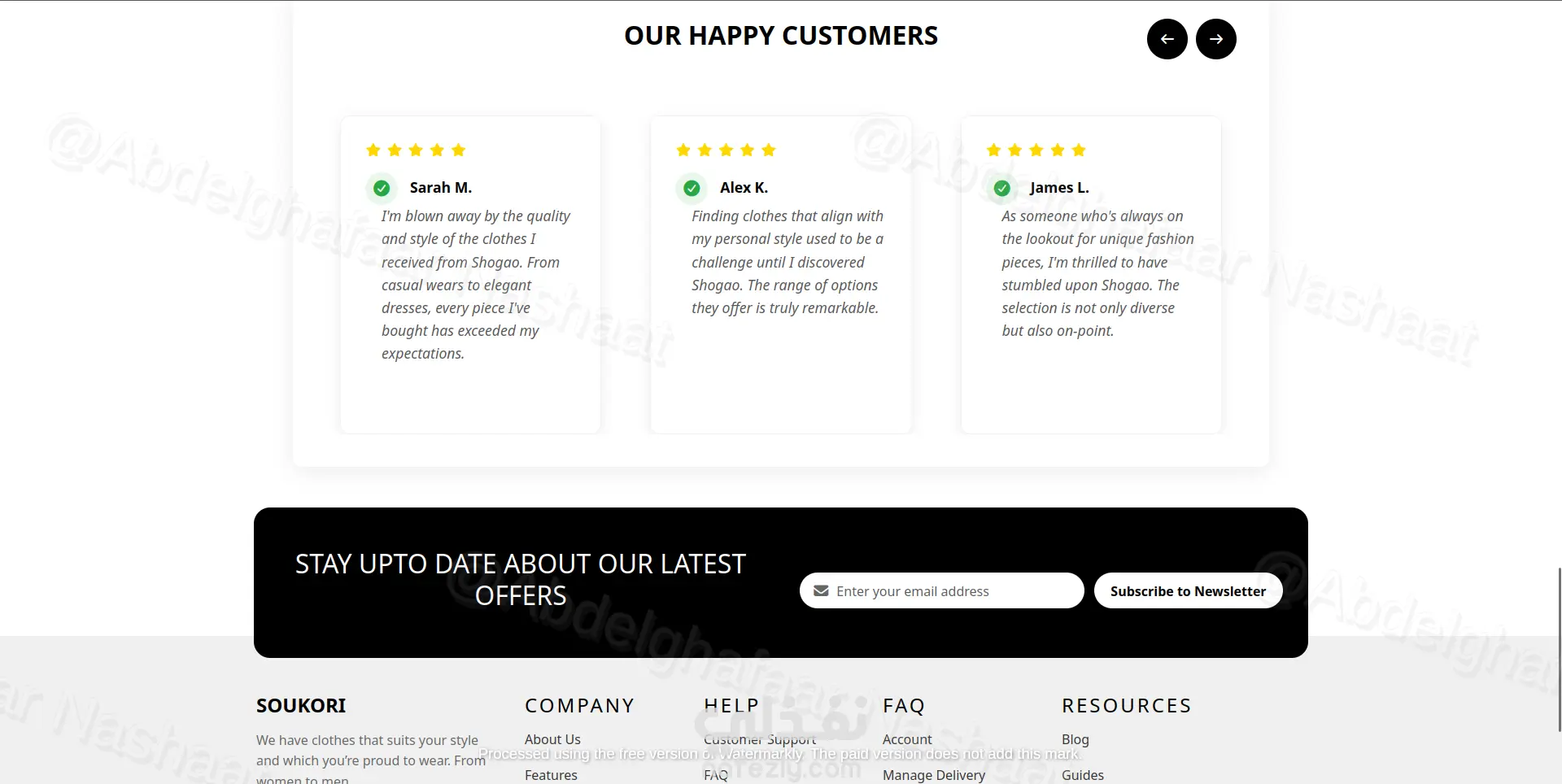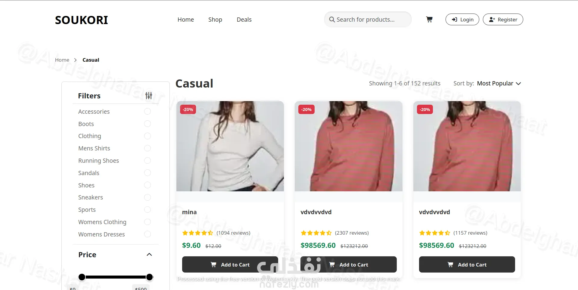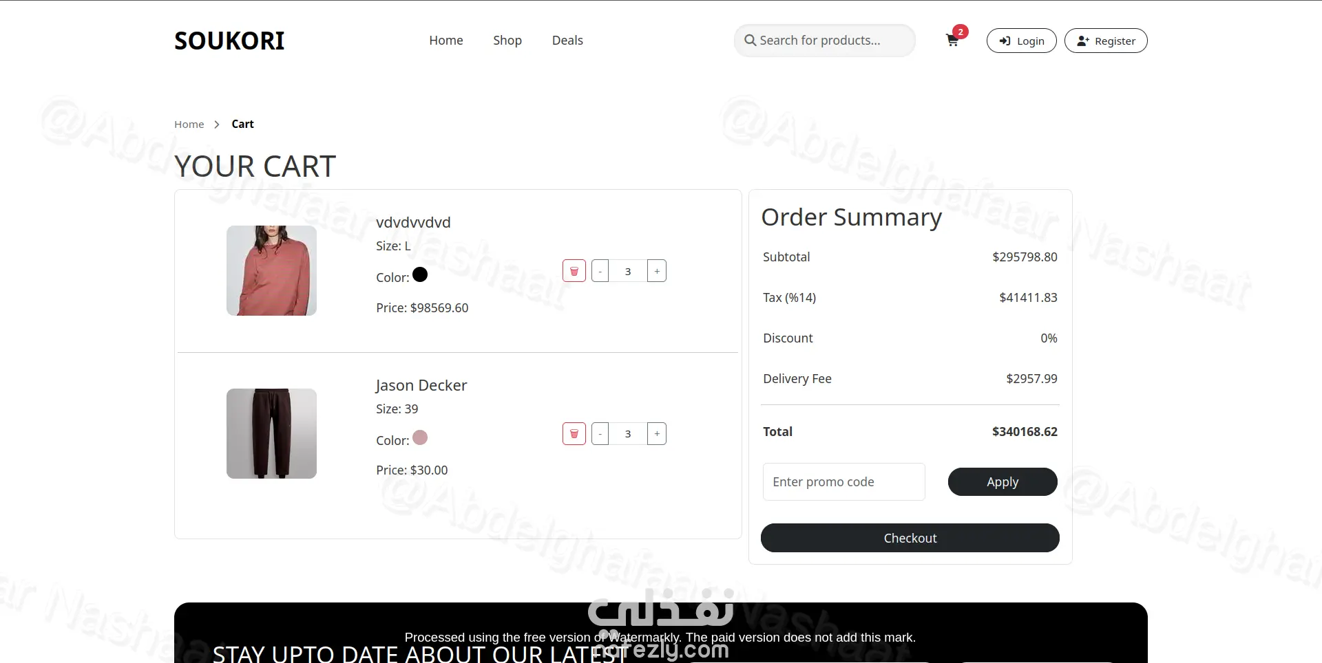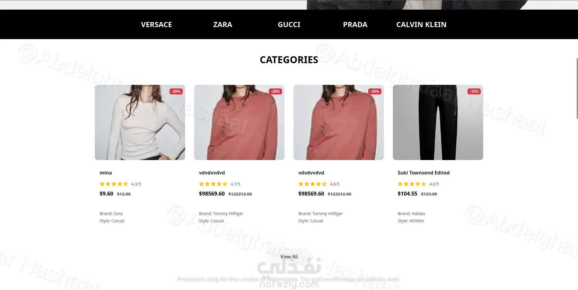 تم تنفيذ متجر إلكتروني حديث لعلامة ملابس محلية يركز على عرض المنتجات وزيادة المبيعات. تم دعم الملابس بأنواعها المختلفة (الألوان, الأحجام, الخ) و كل نوع له سعره و المخزون الخاص به. تم تحويل التصميمات إلى واجهة Pixel Perfect ومتجاوبة، مع نظام متكامل لإدارة المنتجات، المخزون، الطلبات، وحسابات المستخدمين. تم ربط الدفع الإلكتروني وأتمتة تحديث الطلبات والمخزون لتسهيل العمليات اليومية للعميل.