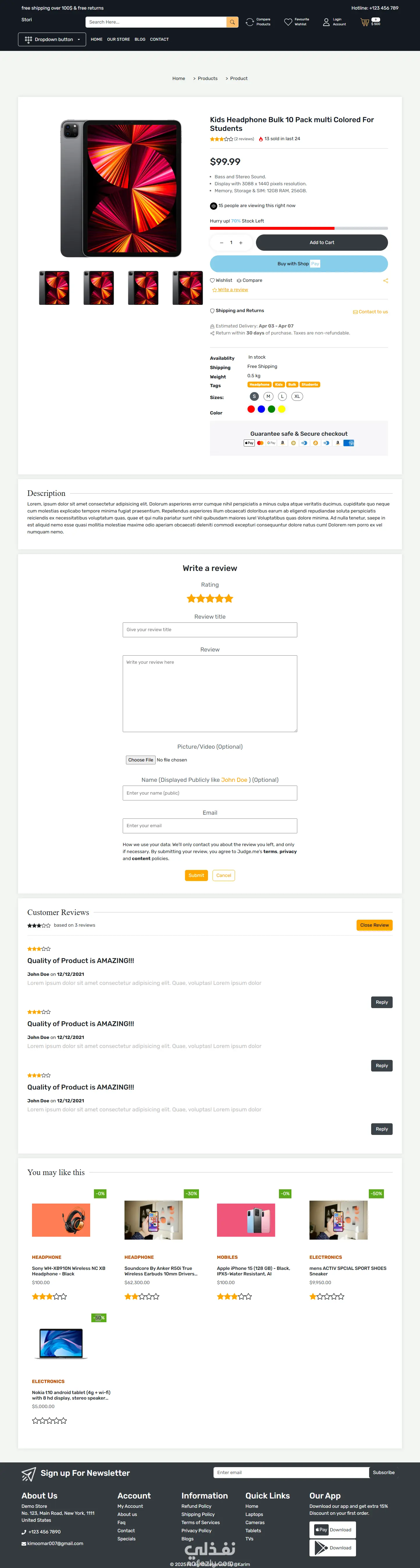 تصميم وتطوير متجر إلكتروني حديث يدعم عرض المنتجات، الخصومات، التقييمات، وسلة المشتريات. تم التركيز على سرعة الأداء، تنظيم البيانات والأكواد، وتجربة مستخدم واضحة وسهلة. الواجهة مبنية بأسلوب Responsive لتعمل بكفاءة على جميع الأجهزة، مع إدارة حالة احترافية باستخدام Redux Toolkit وربط كامل مع Backend آمن (Node/Express + MongoDB). أهم المميزات: عرض منتجات وتصنيفات متعددة سلة مشتريات ودعم الخصومات تصميم متجاوب وسريع بنية Backend قوية وقابلة للتوسّع