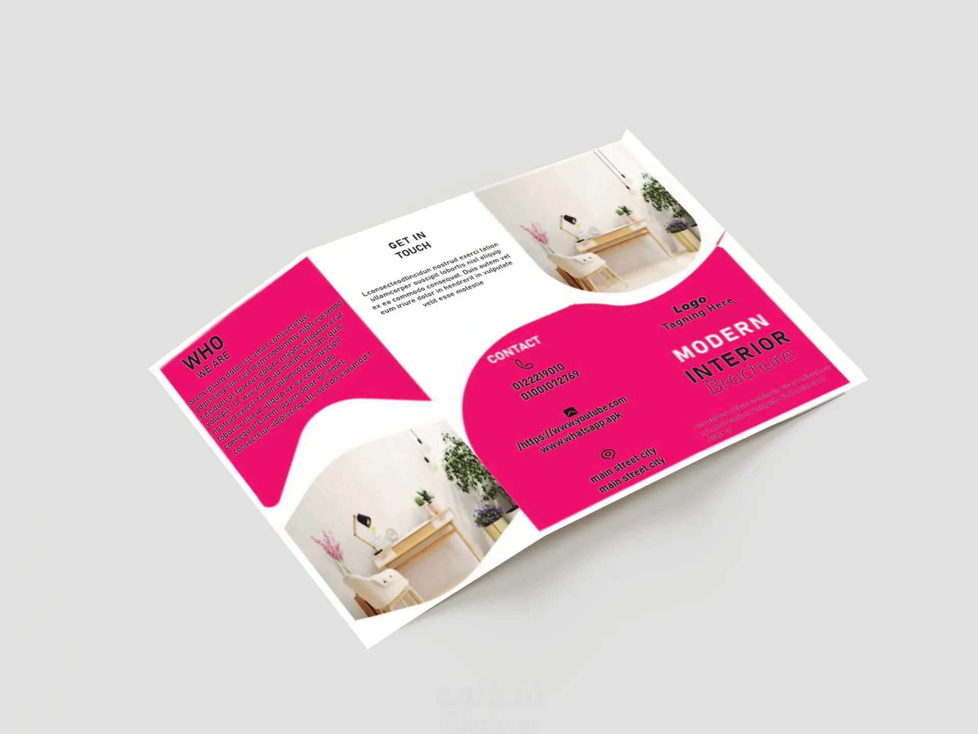 قمت بتصميم هذا البروشور ليكون حلاً مثالياً للشركات التي تبحث عن مظهر عصري (Modern) ومنظم. يتميز التصميم باستخدام الأشكال الهندسية المبتكرة والدمج بين الزوايا الحادة والمنحنيات الانسيابية. هيكلية المعلومات: تم تقسيم البروشور إلى أقسام واضحة تشمل (من نحن، خدماتنا، خطة العمل، ومعلومات التواصل) لضمان تجربة مستخدم سلسة. التناسق البصري: استخدام تباين لوني قوي (Magenta & White) لجذب العين نحو العناوين الرئيسية والمعلومات الهامة. مرونة المحتوى: التصميم مجهز بقوالب نصية (Placeholder text) وصور توضيحية، مما يجعله قابلاً للتعديل ليناسب أي نشاط تجاري (ديكور، عقارات، تقنية). دقة التنفيذ: مراعاة الهوامش (Margins) ومساحات الأمان لضمان جودة التصميم عند الطباعة الورقية أو العرض الرقمي. الادوات المستخدمه Adobe Illustrator